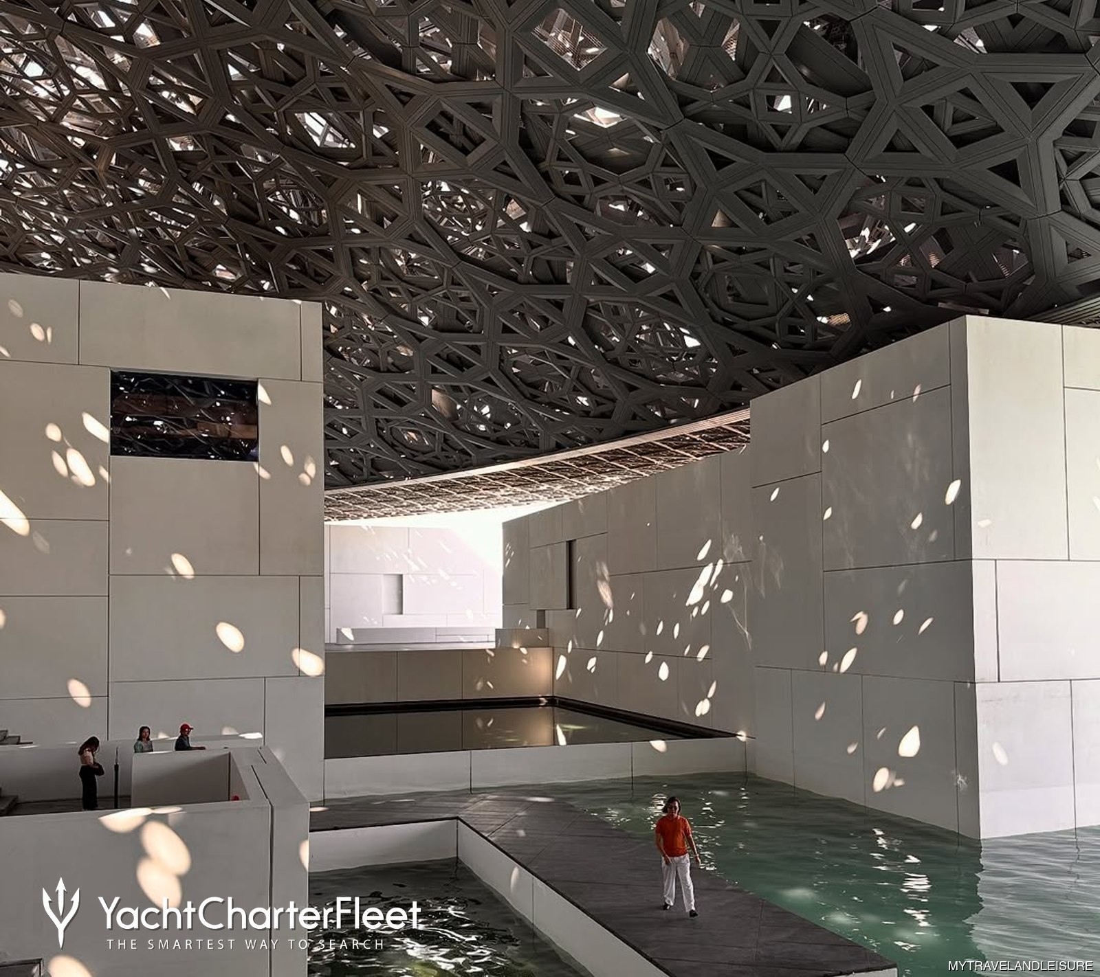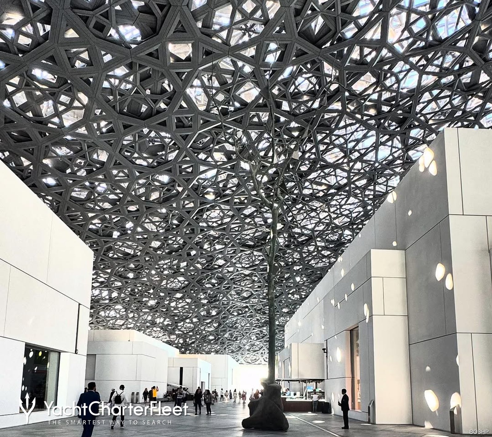 Saadiyat Island itself is home to a growing cultural district, with future institutions planned nearby. Its quiet layout and clear pathways make it simple to explore on foot before or after entering the museum and a perfect addition to a yacht charter.