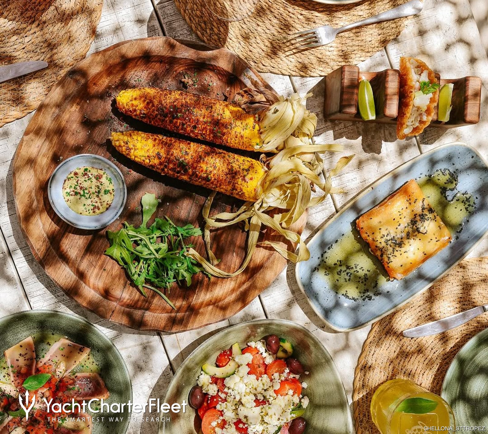 From the deck, the water shimmers in subtle blues, and anchored vessels form part of the view. The sense of connection between land and sea makes Shellona a fitting stop for those exploring the coast on a St Tropez yacht charter.
