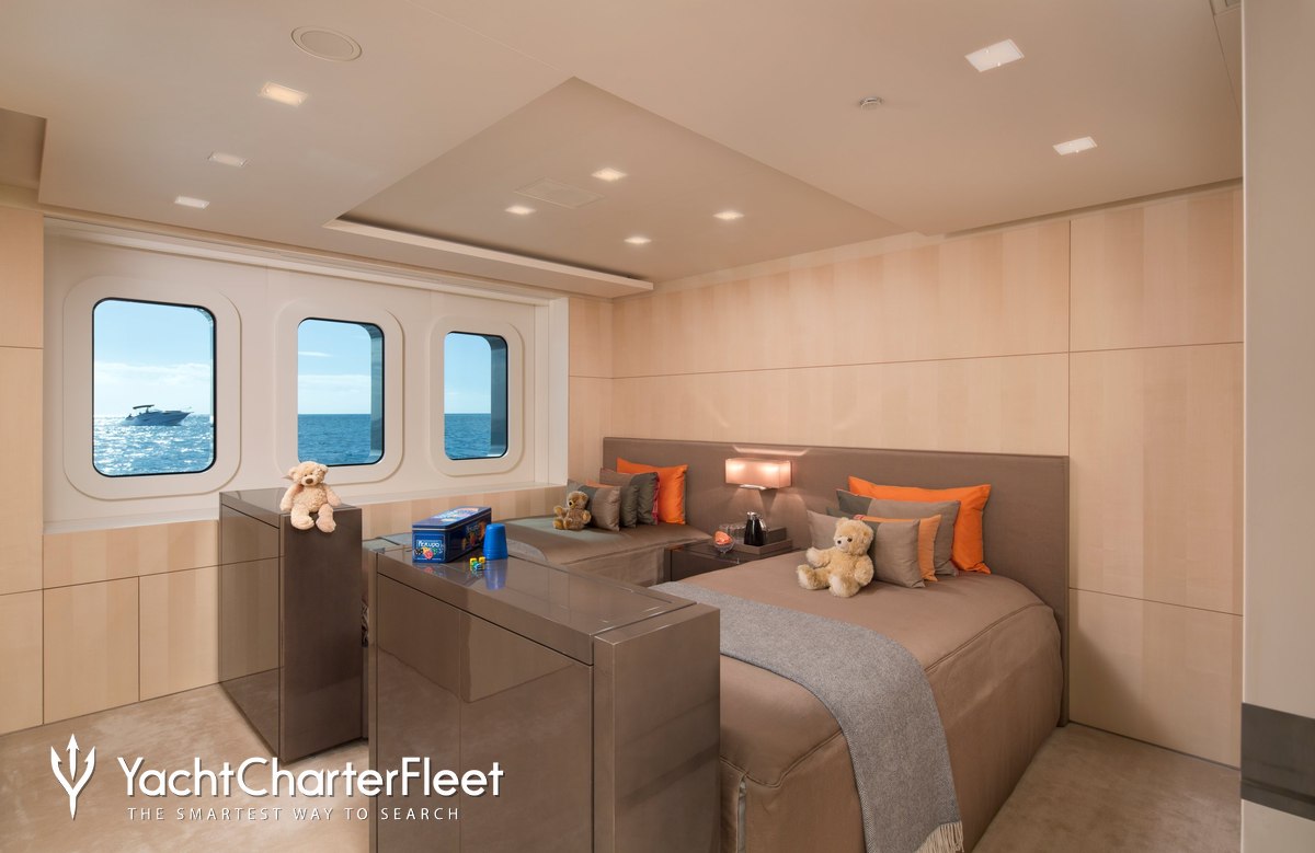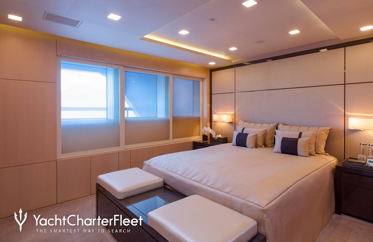 Siren is great for families thanks to her child-friendly setup. She offers guest accommodation for up to 12 guests with a layout comprising a master suite located on the main deck, one VIP cabin, three double cabins and one twin cabin. There are 8 beds in total, including 1 king, 4 queen, 1 double, 2 singles and 1 pullman. She is also capable of carrying up to 18 crew onboard to ensure a relaxed luxury yacht charter experience.