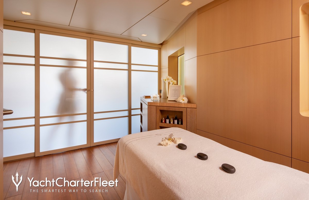 Keeping comfortable and entertained on Siren is easy thanks to the available amenities including a state-of-the-art movie theatre for movie nights. Even the most discerning of charter guests will enjoy the included beach club and a gym with all the latest equipment is available for a good work out. Soak up the bubbles in style in the deck jacuzzi.