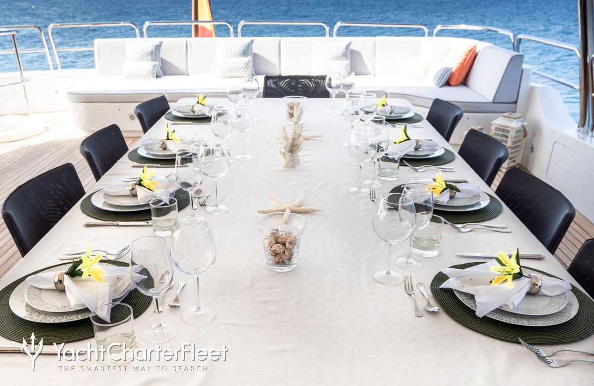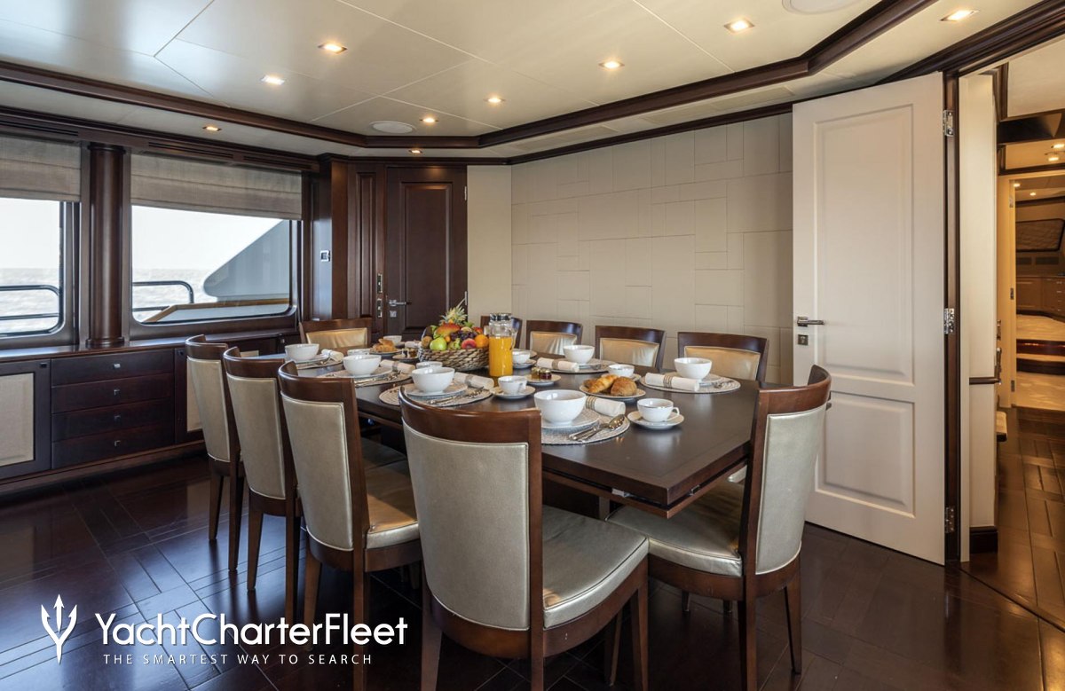 Motor yacht Elena Nueve boasts a wealth of convivial spaces, perfect for luxury yacht charters with families of friends, offering ample opportunities to kick back and relax, or enjoy the water on the yacht's array of water toys, the choice is yours.