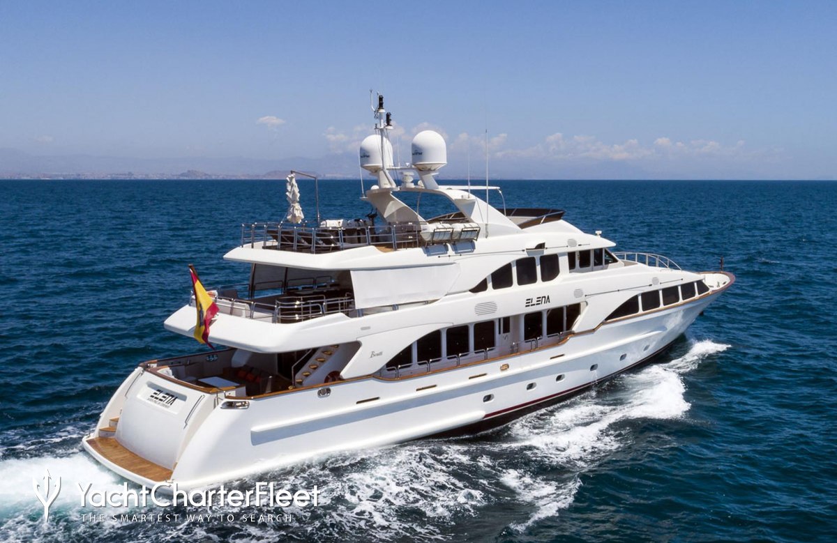 The 36.6m/120'1" 'Elena Nueve' motor yacht built by the Italian shipyard Benetti is available for charter for up to 12 guests in 5 cabins.