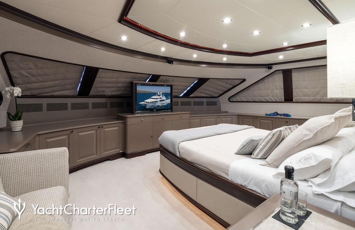 Elena Nueve is great for families thanks to her child-friendly setup. Built in 2007, She offers guest accommodation for up to 12 guests with a layout comprising a master suite, two double cabins and two twin cabins. There are 9 beds in total, including 4 singles and 2 pullmans. She is also capable of carrying up to 7 crew onboard to ensure a relaxed luxury yacht charter experience.