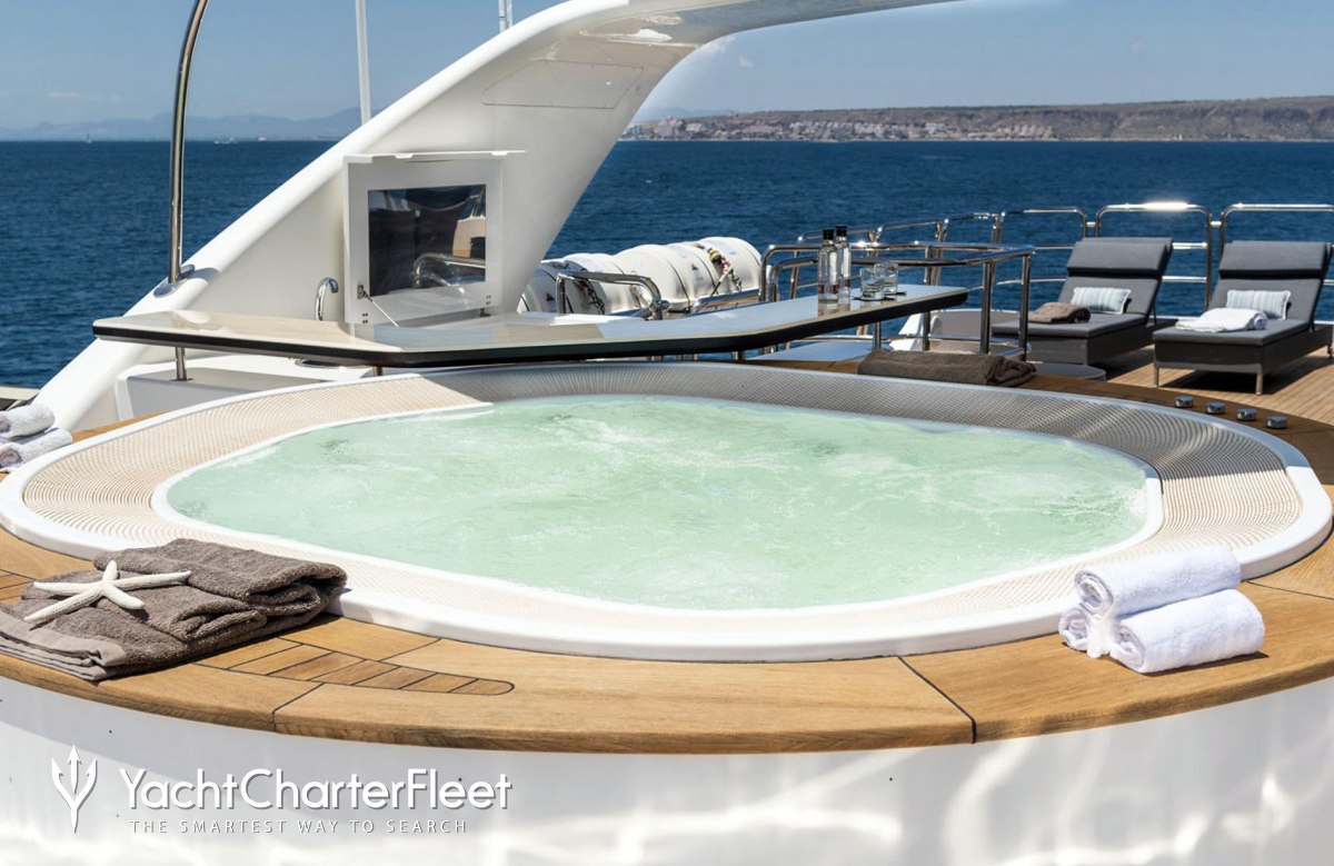 On your charter, you'll find plenty to keep you busy and entertained including a gym with all the latest equipment to maintain your fitness routine. Sit back with a glass of champagne in the deck jacuzzi.