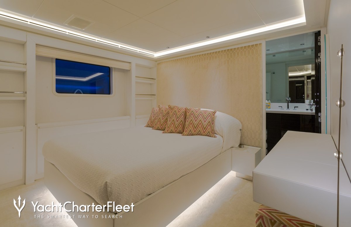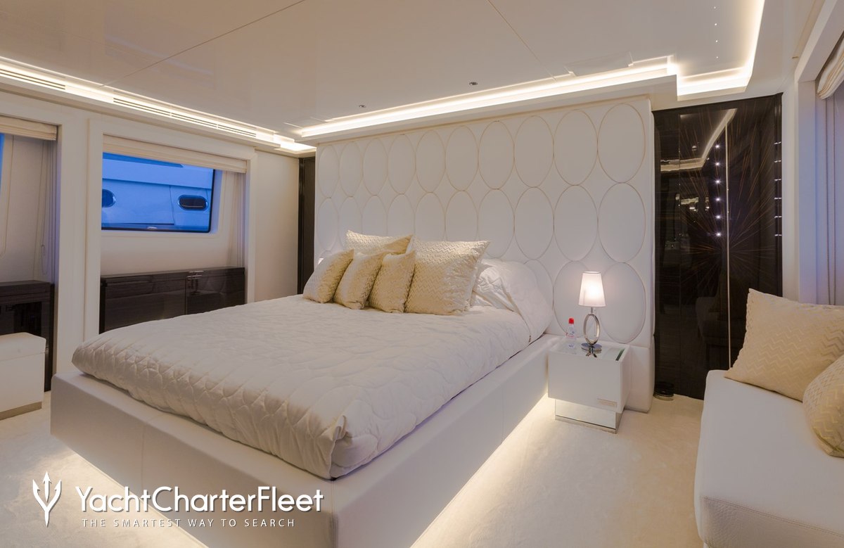 Built in 2014, Gala I offers guest accommodation for up to 10 guests in 5 suites comprising a master suite located on the main deck, two VIP cabins and two double cabins. There are 5 beds in total, including 1 king, 1 queen and 4 doubles. She is also capable of carrying up to 5 crew onboard to ensure a relaxed luxury yacht charter experience.