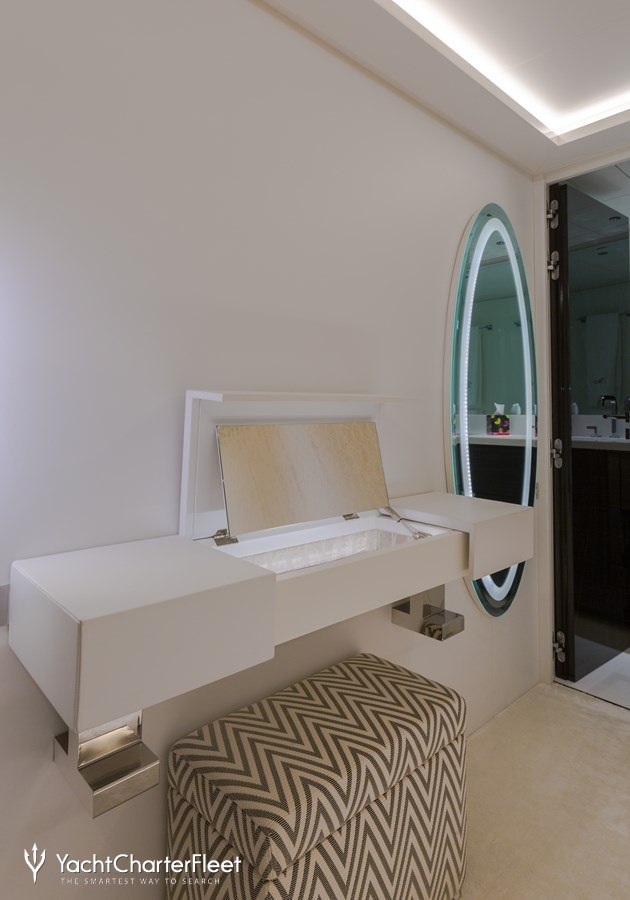Whatever your activities on your charter, you'll find some impressive features are seamlessly integrated to help you, notably satellite communications, keeping you connected on any voyage. With Wi-Fi connectivity you don't have to lose contact with the outside world, unless you want to and in addition you can stay comfortable on board whatever the weather, with air conditioning during your charter.