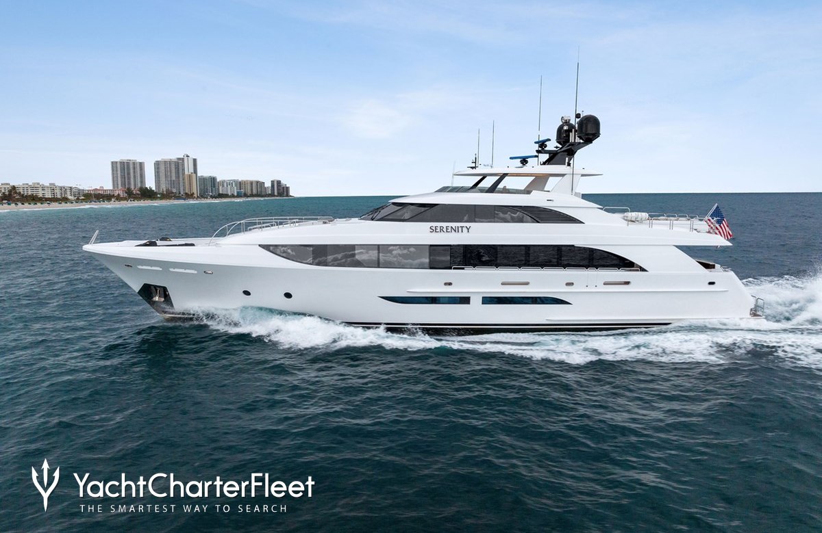 The luxury motor yacht Serenity is displayed on this page merely for informational purposes and she is not necessarily available for yacht charter or for sale, nor is she represented or marketed in anyway by Trident Media Ltd. This document is not contractual. The yacht particulars displayed in the results above are displayed in good faith and whilst believed to be correct are not guaranteed, please check with your yacht charter broker. Trident Media Ltd does not warrant or assume any legal liability or responsibility for the accuracy, completeness, or usefulness of any information and/or images displayed as they may not be current. All boat information is subject to change without prior notice and is without warranty.