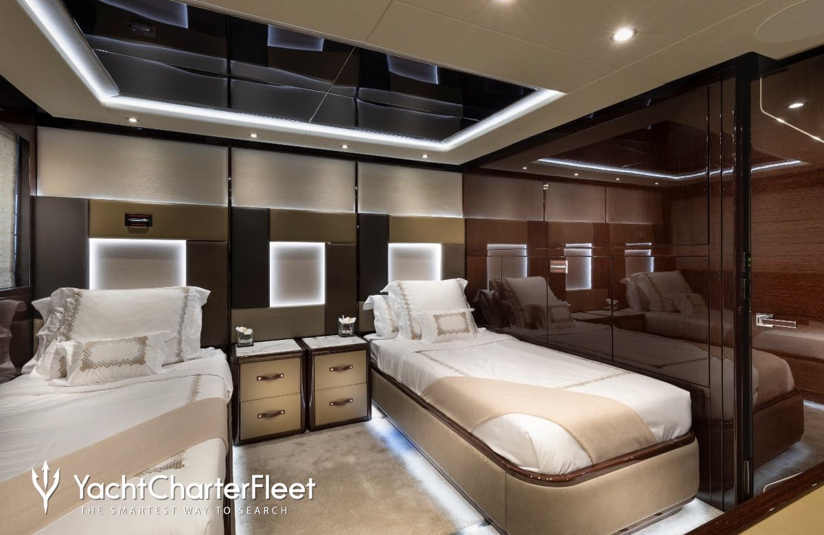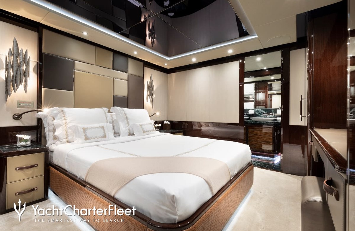 Nexus is great for families thanks to her child-friendly setup. She offers guest accommodation for up to 12 guests with a layout comprising a master suite located on the main deck and two VIP cabins. There are 9 beds in total, including 1 king, 2 queen, 2 singles, 2 pullmans and 2 convertible. She is also capable of carrying up to 8 crew onboard to ensure a relaxed luxury yacht charter experience.