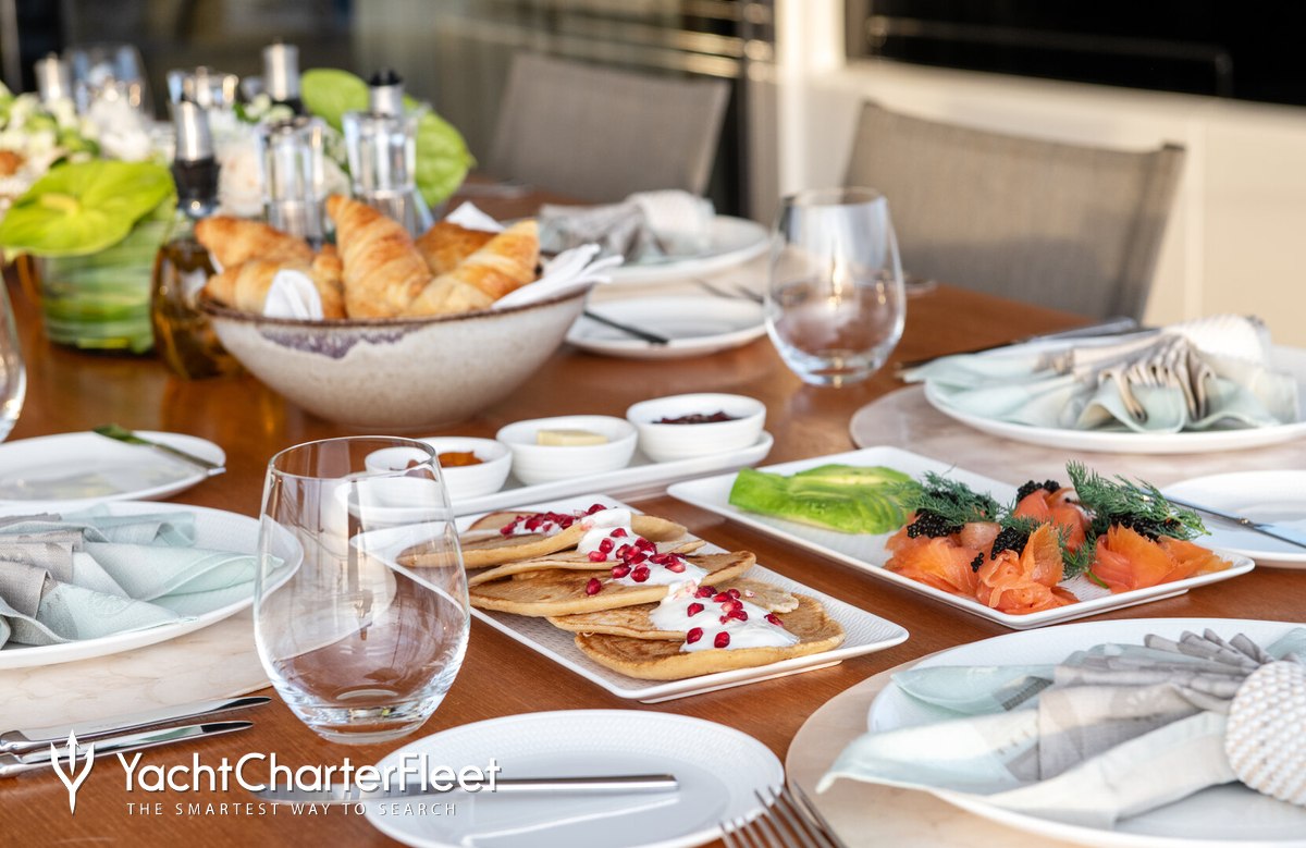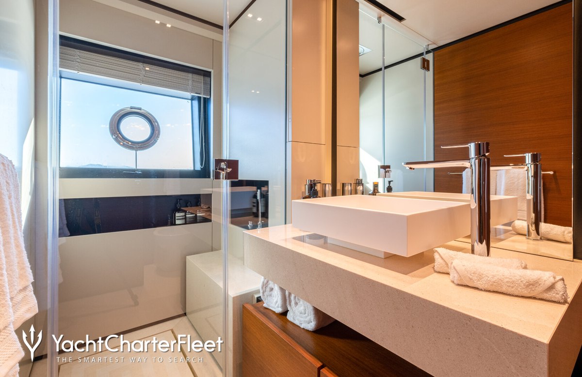 Alberry benefits from some excellent features to improve your charter, notably the underwater lights, adding spectacle and style after dark. With Wi-Fi connectivity you don't have to lose contact with the outside world, unless you want to and you can stay comfortable on board whatever the weather, with air conditioning during your charter.