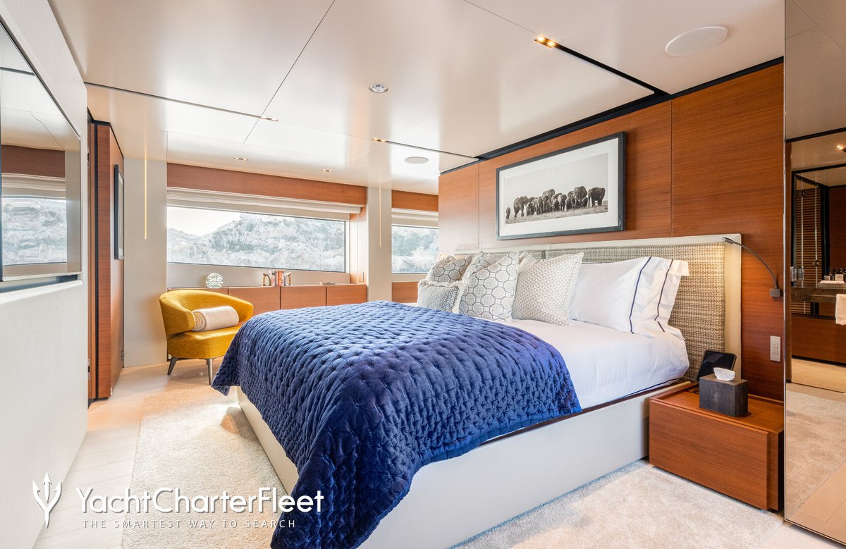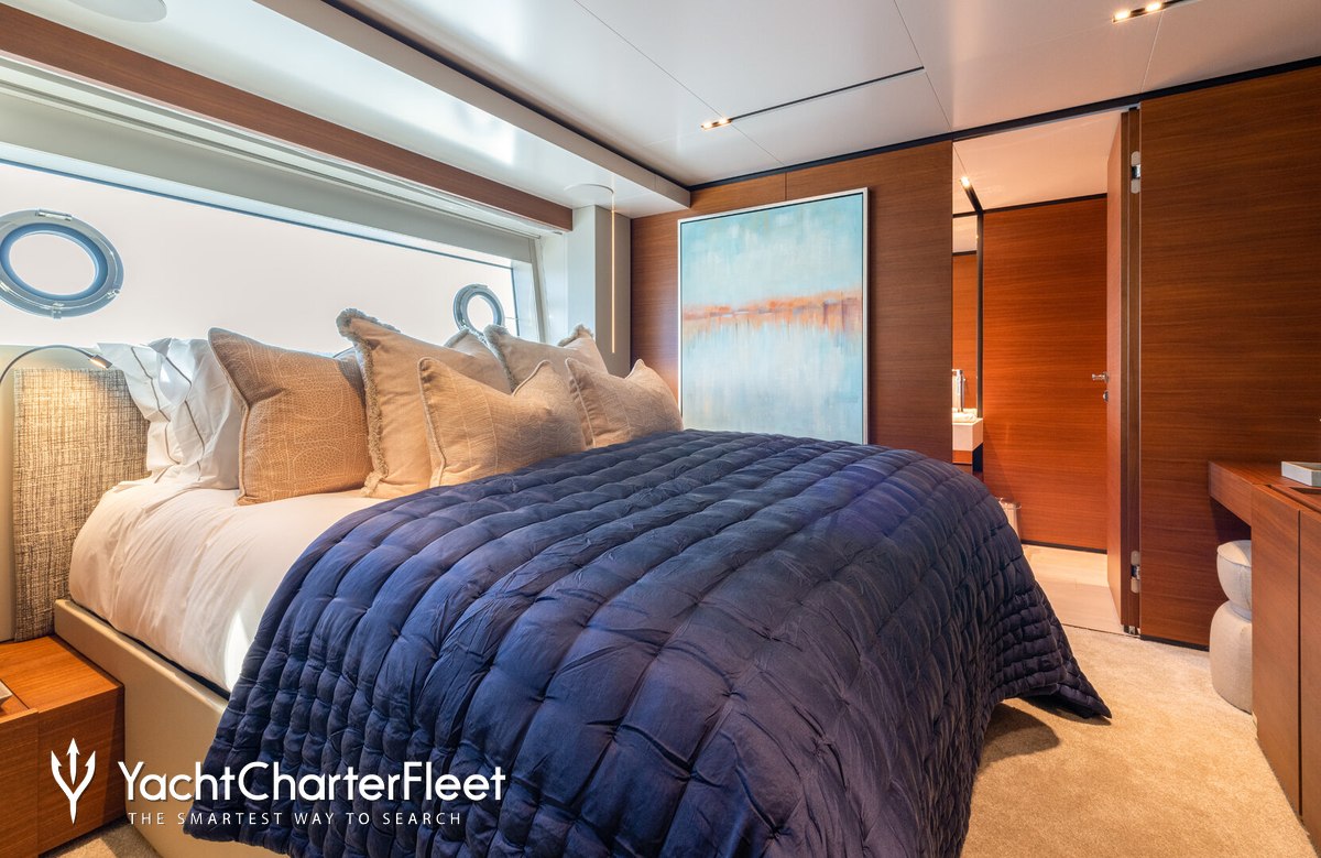 Alberry offers guest accommodation for up to 10 guests in 5 suites comprising a master suite, two double cabins, one twin cabin and one cabin that can operate as twin or double. She is also capable of carrying up to 6 crew onboard to ensure a relaxed luxury yacht charter experience.