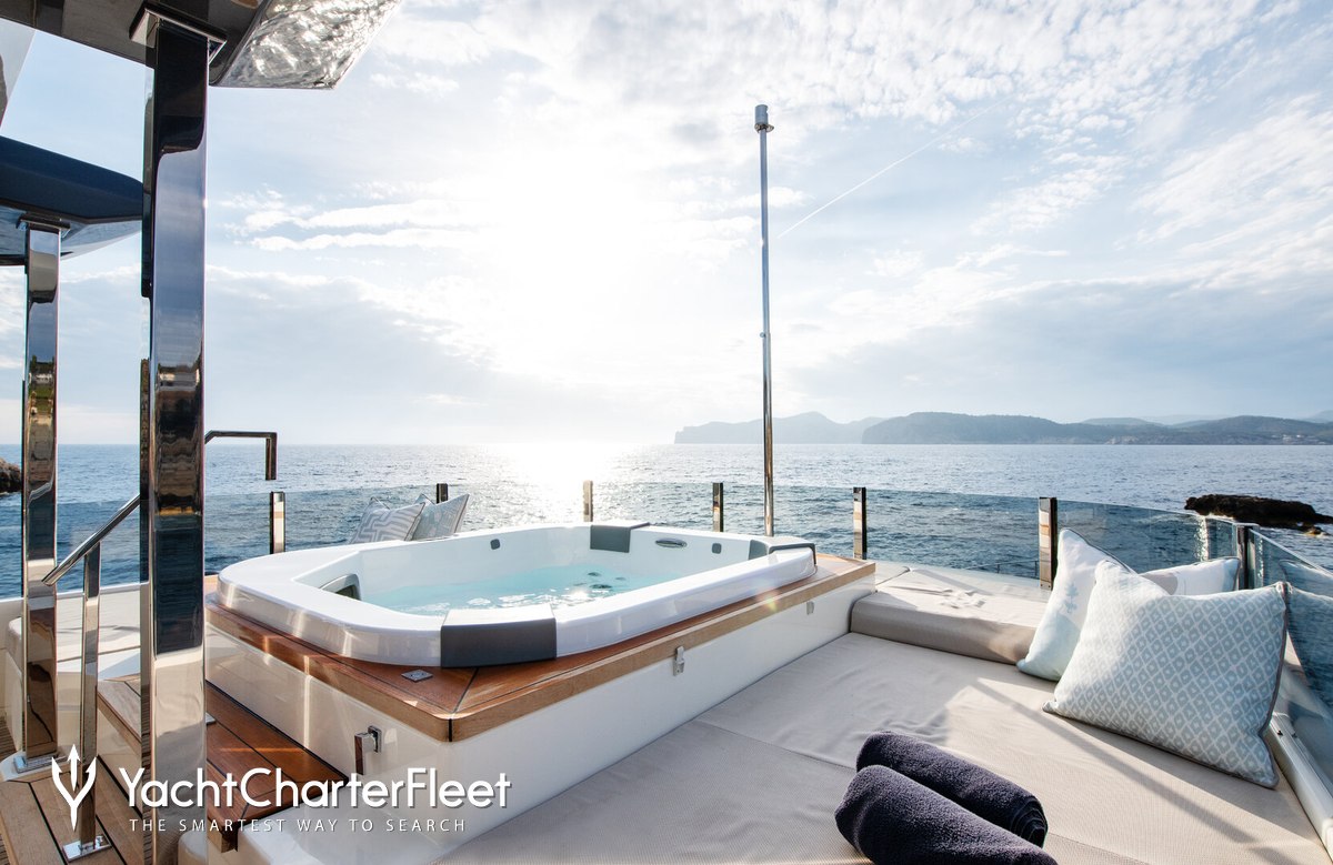 Keeping comfortable and entertained on Alberry is easy thanks to the available amenities, notably a deck jacuzzi, perfect to enjoy the scenery with your favourite drink in hand.