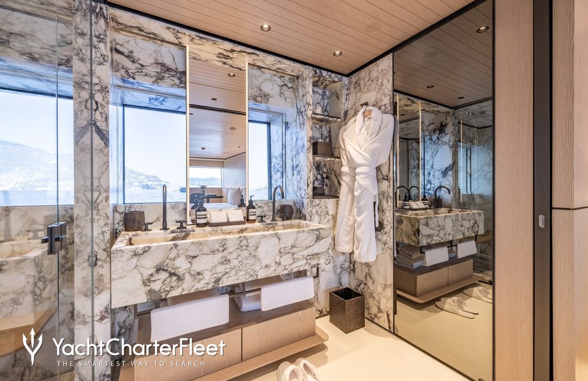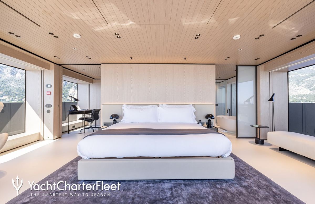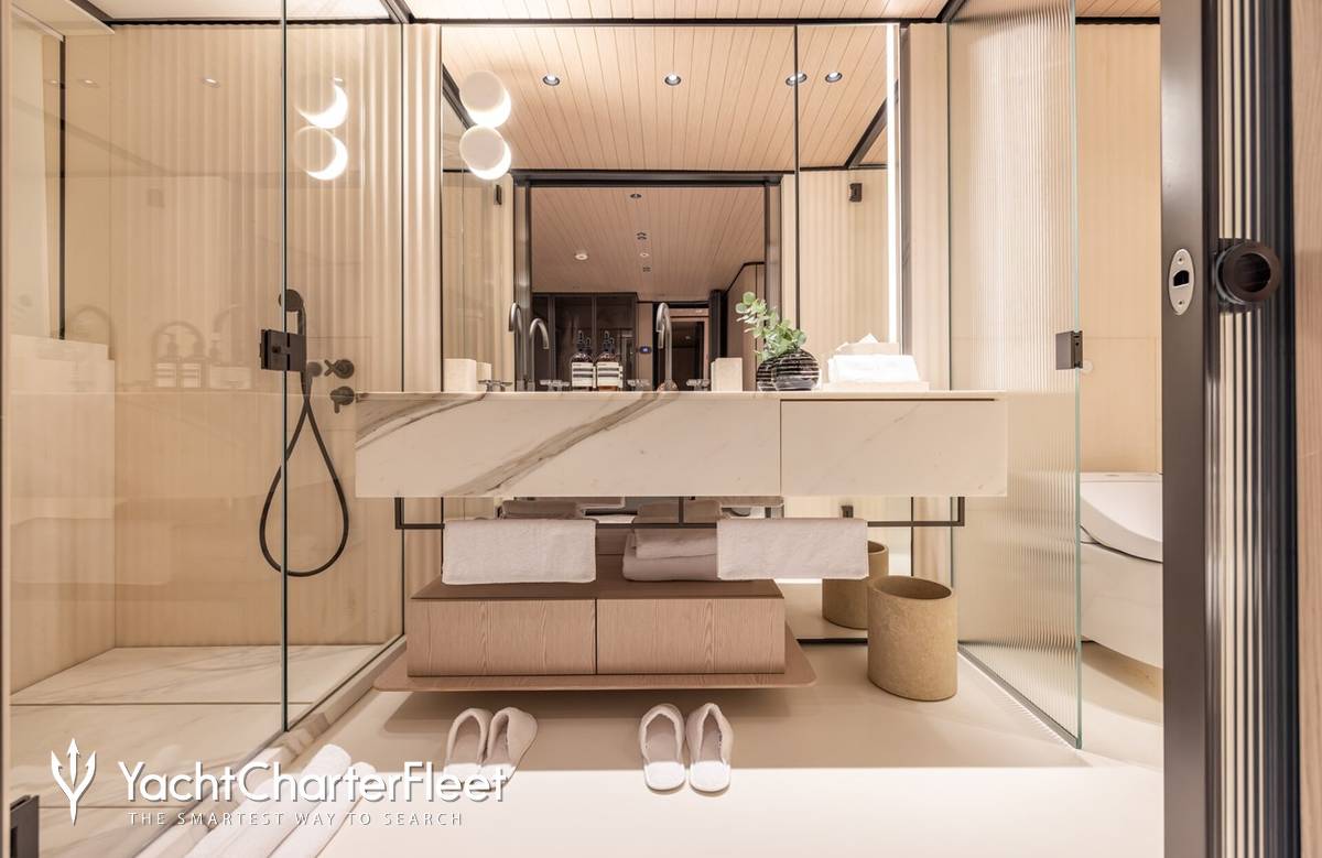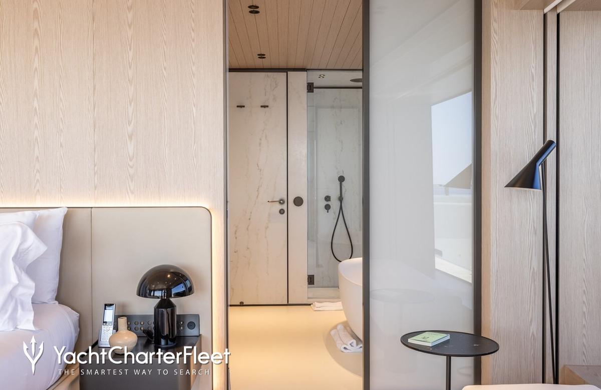Virtuosity offers guest accommodation for up to 12 guests in 6 suites comprising a master suite, two VIP cabins and two cabins that can operate as twins or doubles. She is also capable of carrying up to 12 crew onboard to ensure a relaxed luxury yacht charter experience.