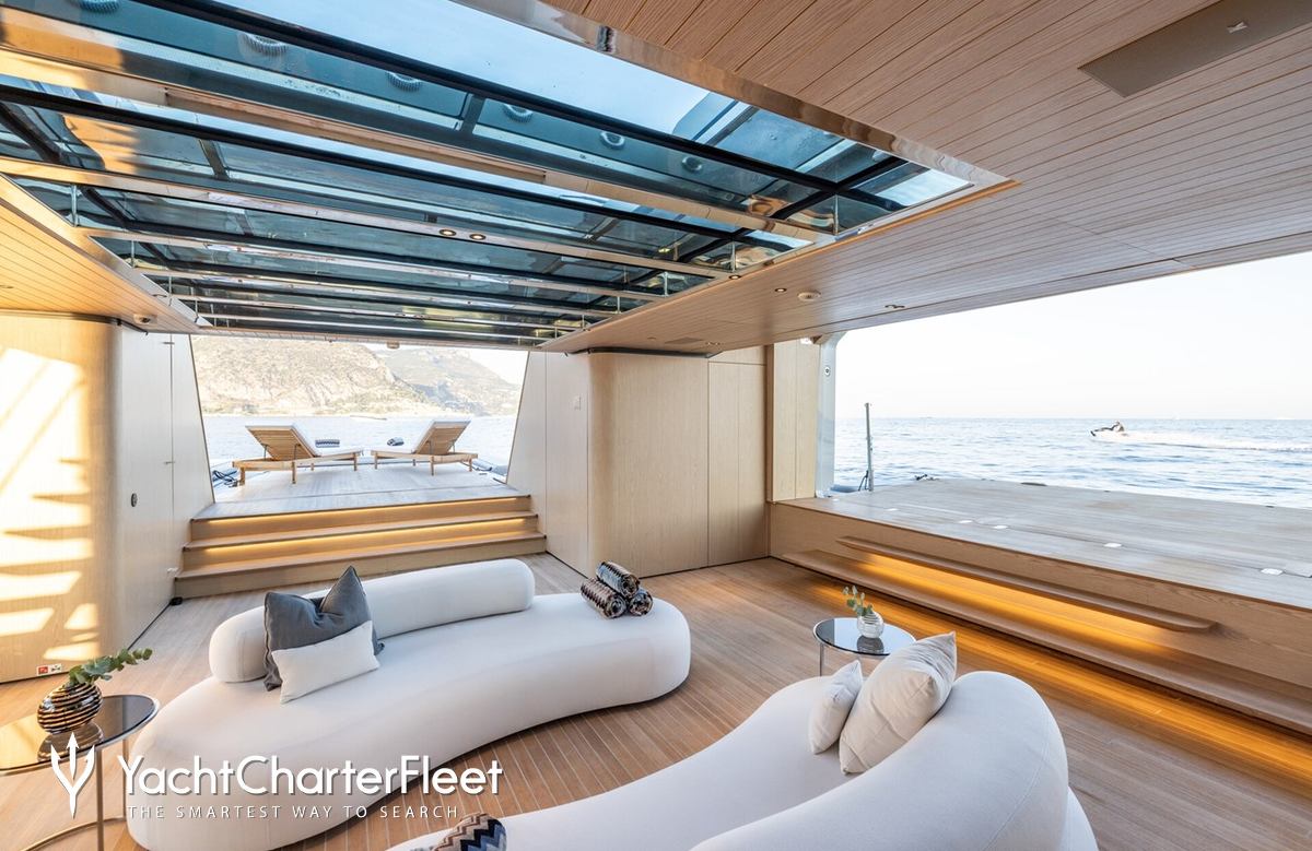 Built in 2023, Virtuosity boasts a multitude of decks ideal for relaxation and entertainment indoors or outdoors, ensuring guests will live la dolce vita on the open waters. She is equipped with a spa, beach club and gym.