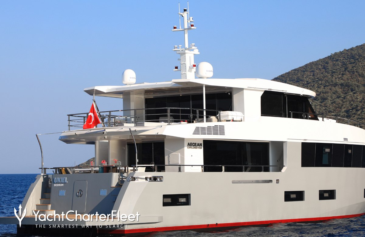 The 26m/85'4" expedition yacht 'Ukiel' by shipyard Aegean Yacht offers flexible accommodation for up to 12 guests in 6 cabins and features interior styling by Aegean Yacht.