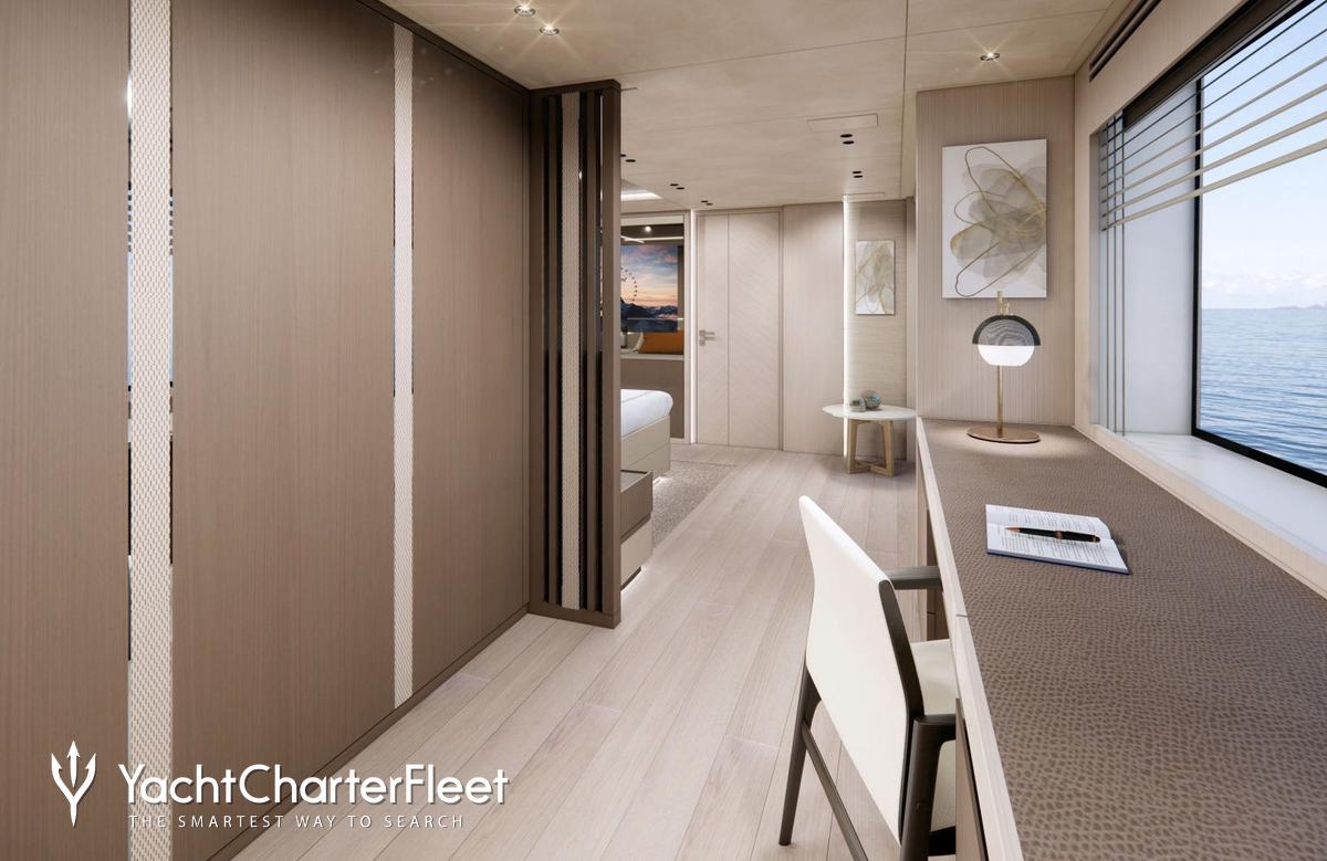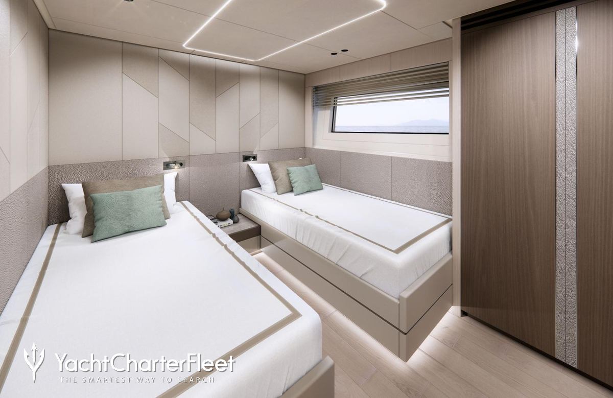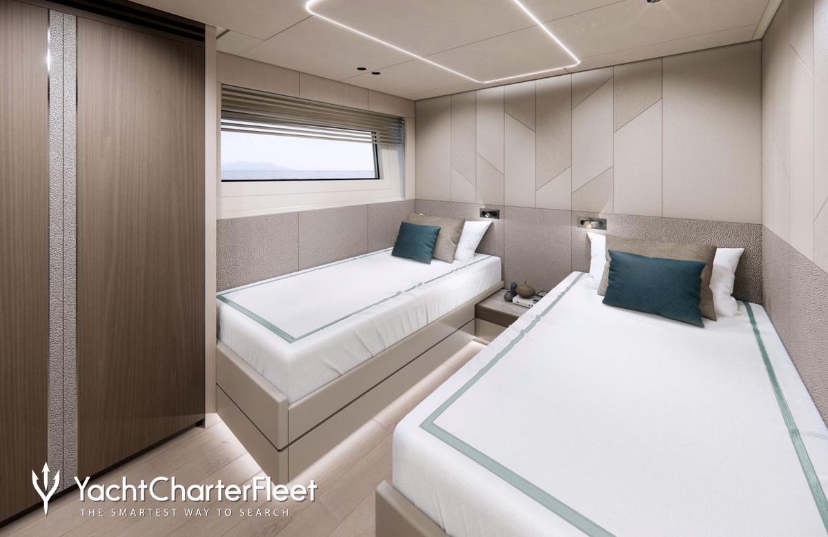 Built in 2025, White Star offers guest accommodation for up to 10 guests in 5 suites comprising a master suite located on the main deck, two VIP cabins and two cabins that can operate as twins or doubles. She is also capable of carrying up to 7 crew onboard to ensure a relaxed luxury yacht charter experience.