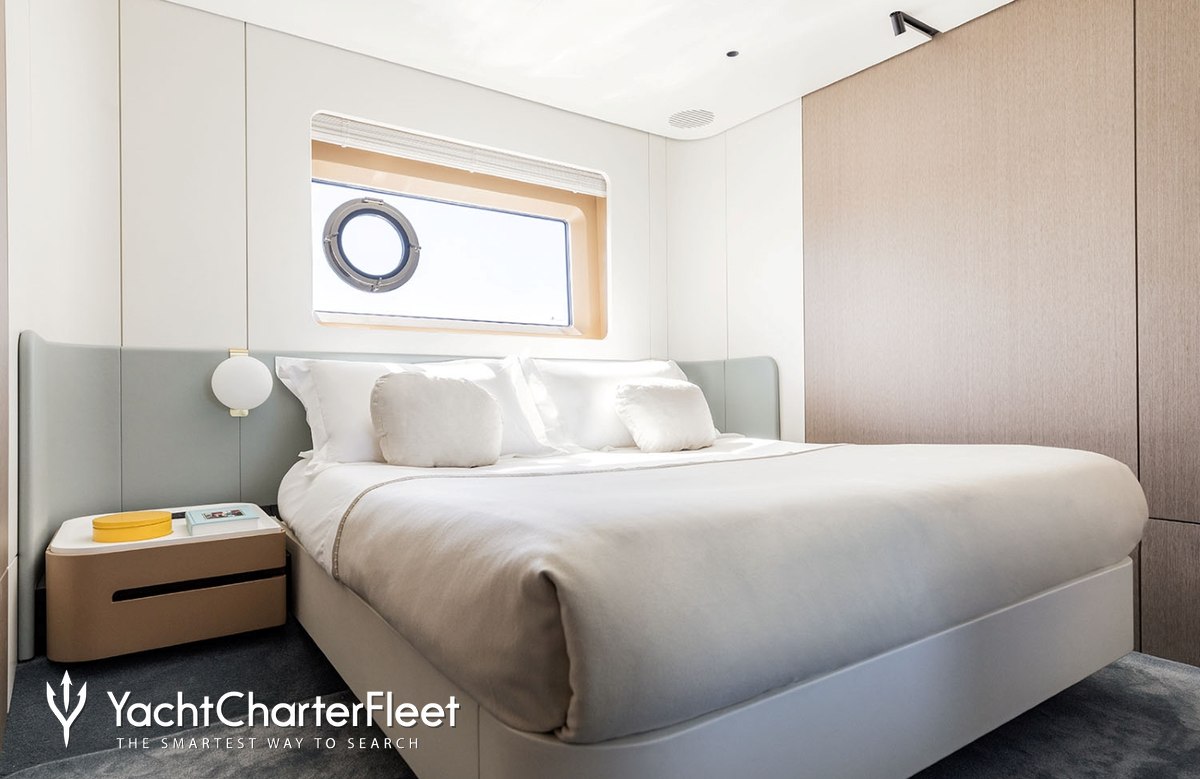 BK offers guest accommodation for up to 10 guests in 5 suites comprising a master suite located on the main deck, two VIP cabins and two cabins that can operate as twins or doubles. She is also capable of carrying up to 3 crew onboard to ensure a relaxed luxury yacht charter experience.