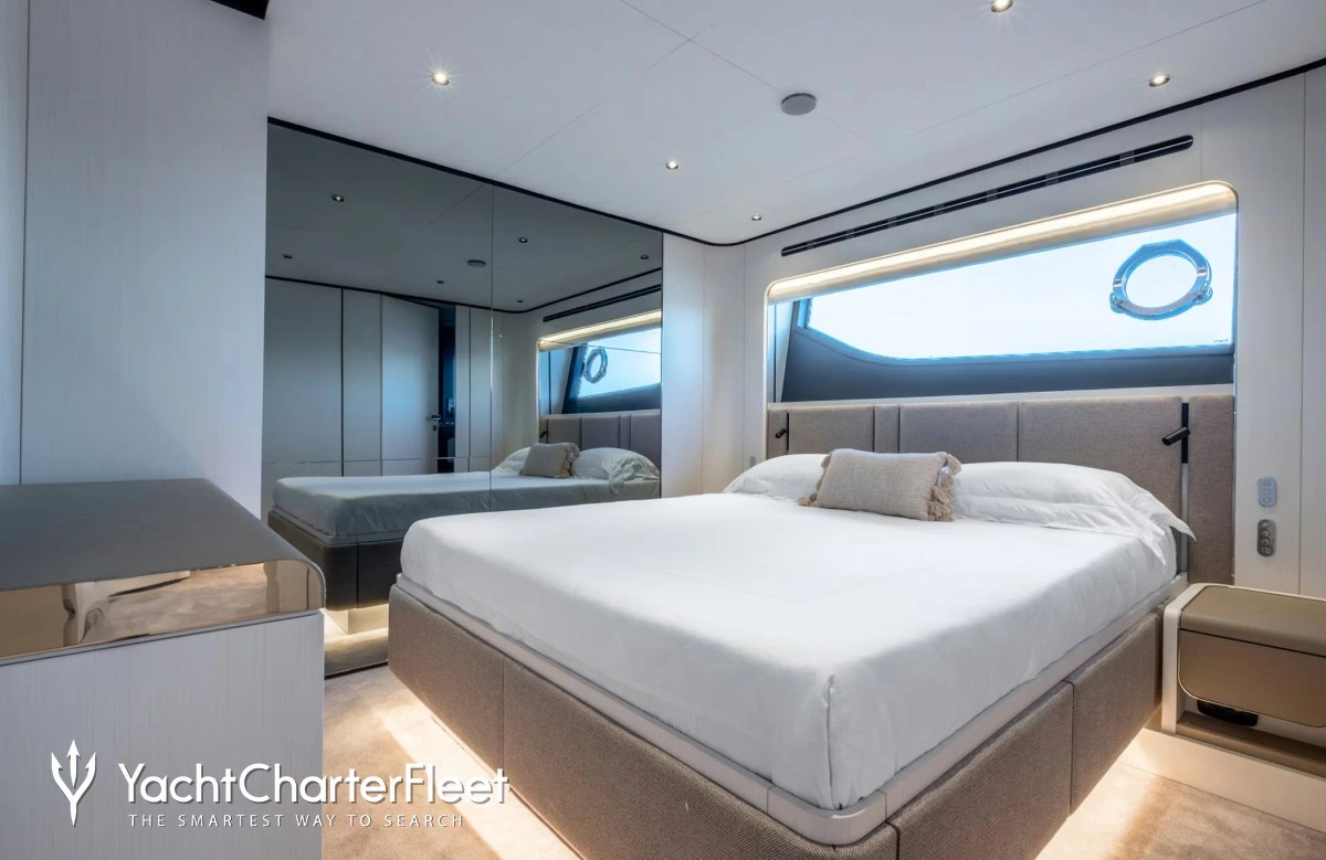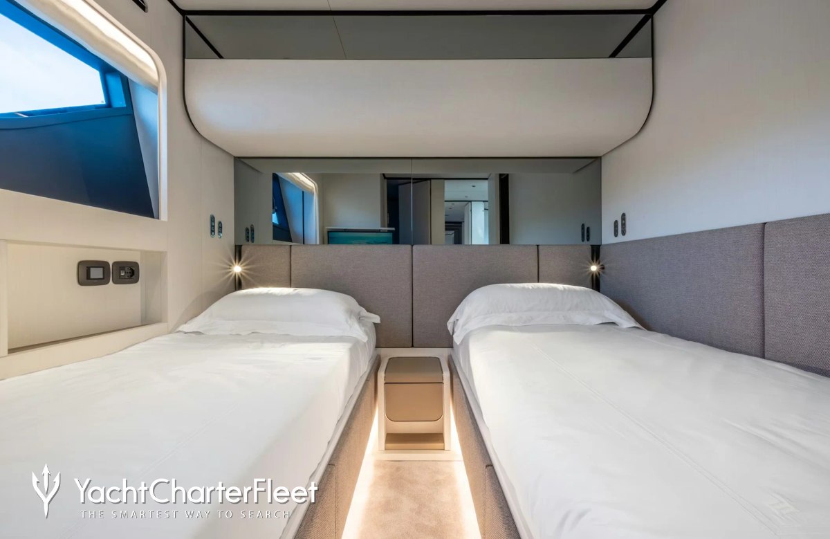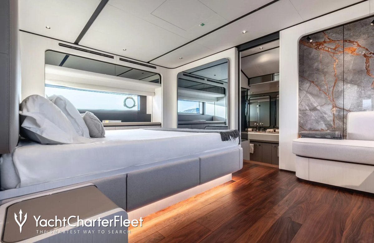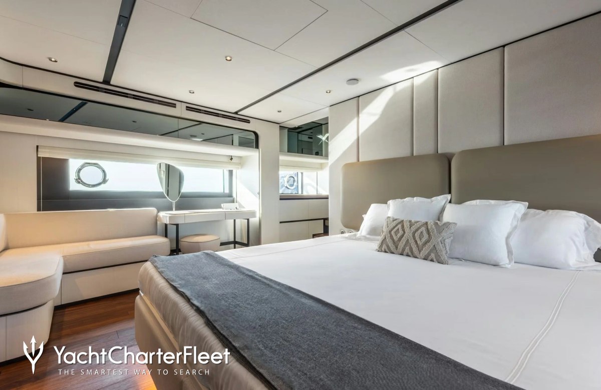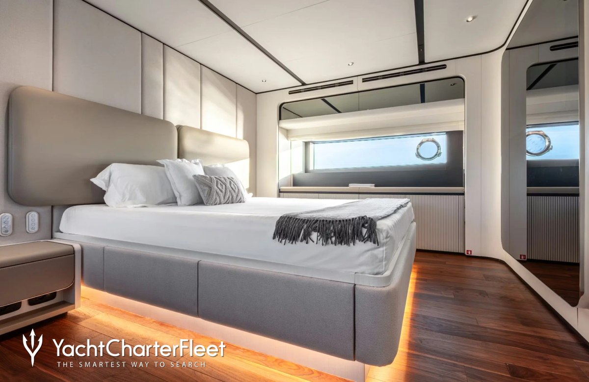 Together offers guest accommodation for up to 10 guests in 5 suites comprising a master suite located on the main deck and three VIP cabins. She is also capable of carrying up to 4 crew onboard to ensure a relaxed luxury yacht charter experience.