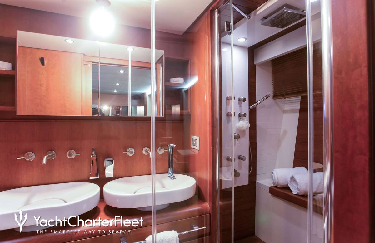Italian Yacht 85 offers guest accommodation for up to 8 guests in 4 suites comprising a master suite, one double cabin and two twin cabins. She is also capable of carrying up to 3 crew onboard to ensure a relaxed luxury yacht charter experience.