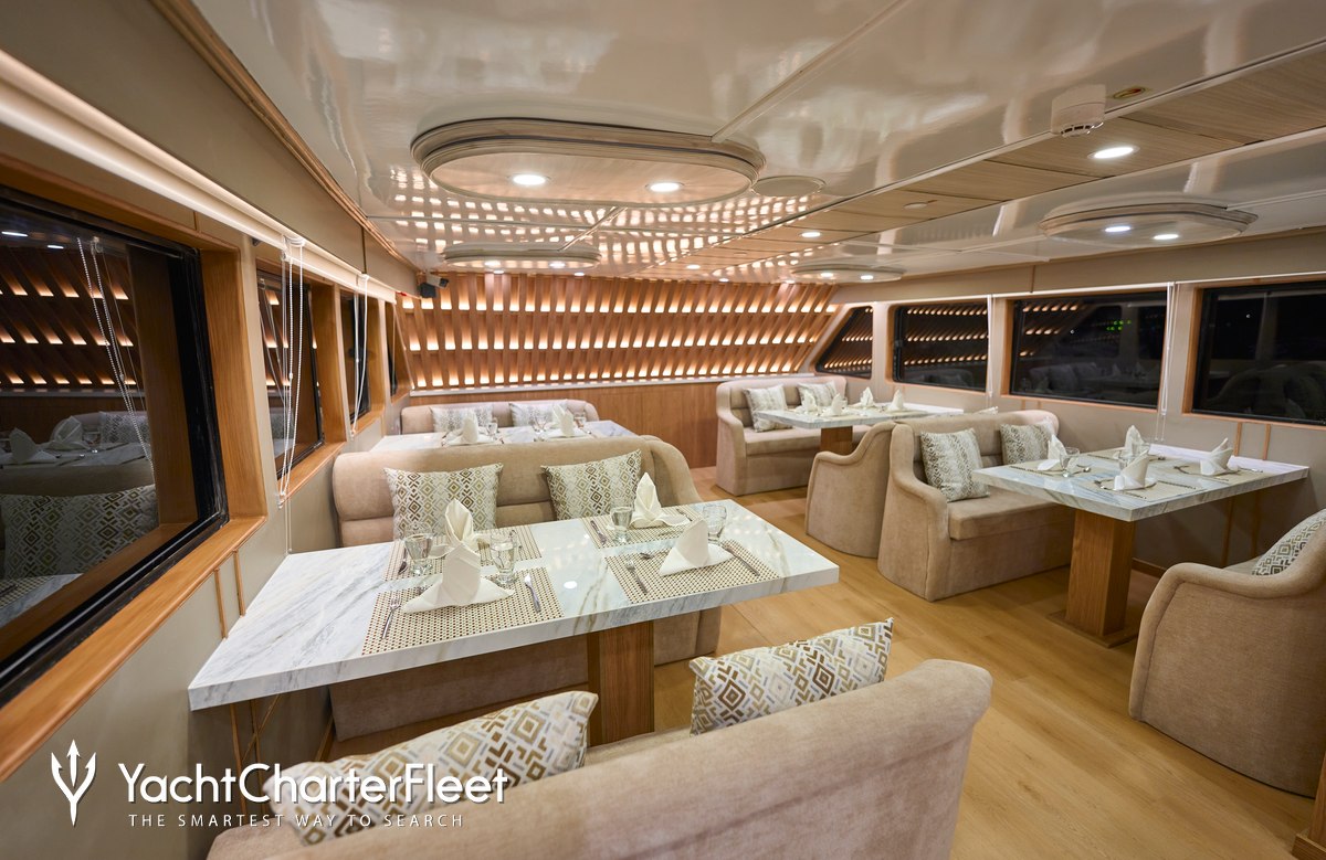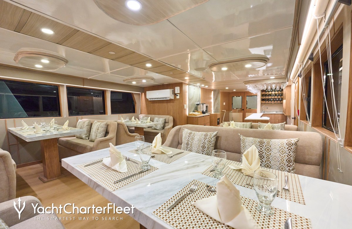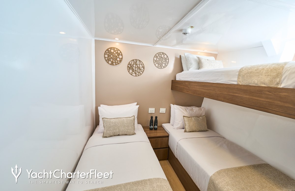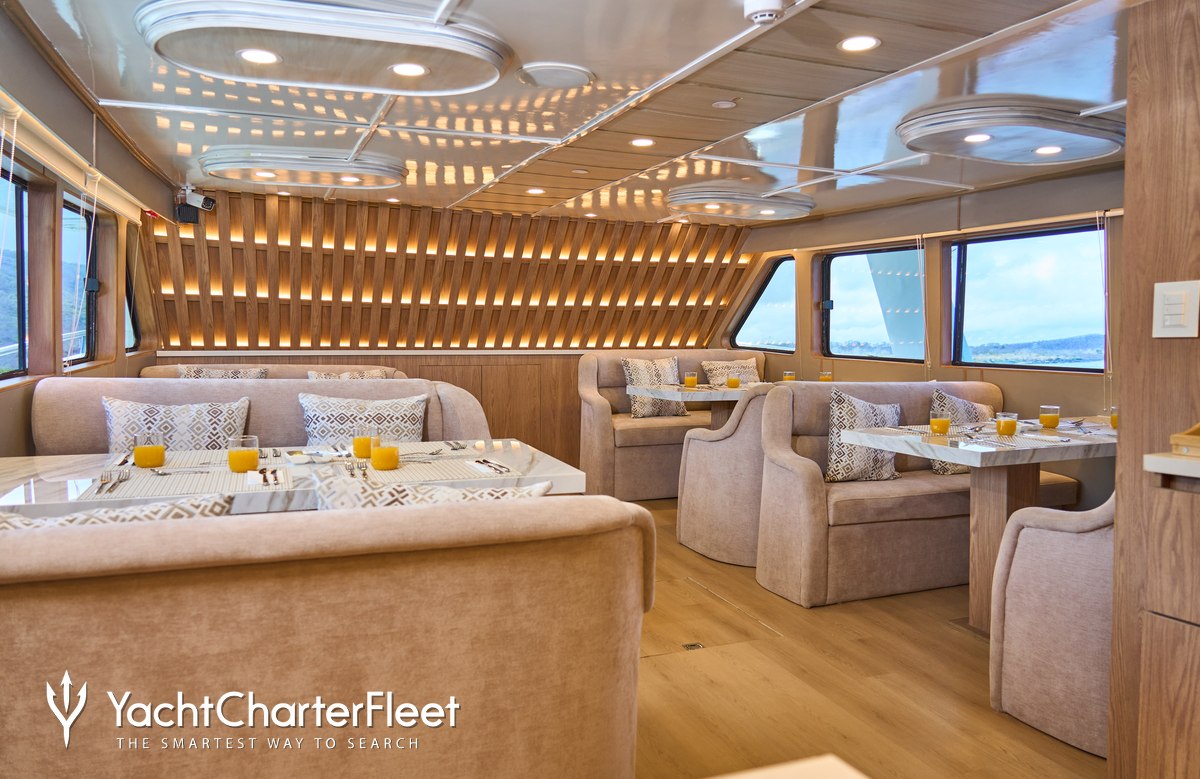 Whatever your activities on your charter, you'll find some impressive features are seamlessly integrated to help you such as Wi-Fi connectivity, allowing you to stay connected at all times, should you wish. Guests will experience complete comfort while chartering thanks to air conditioning.
