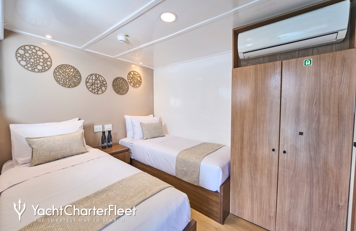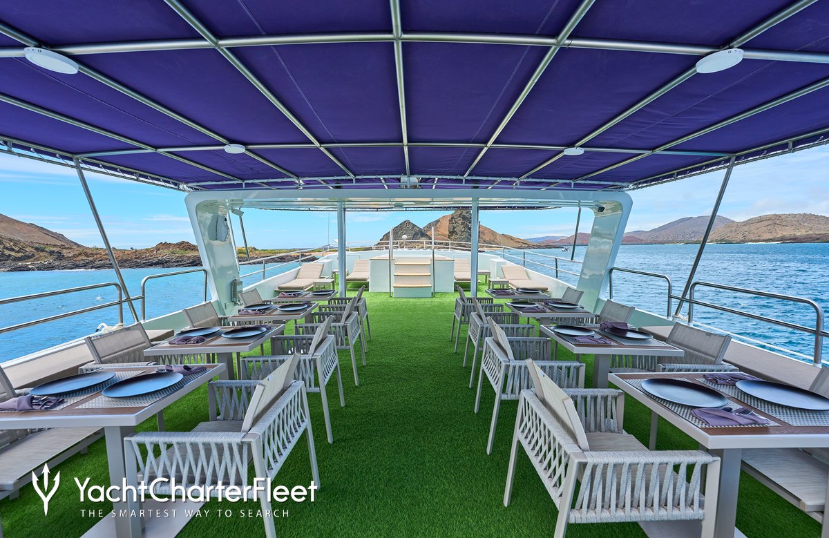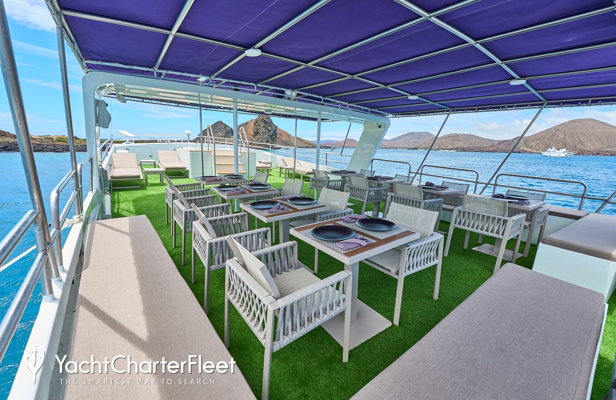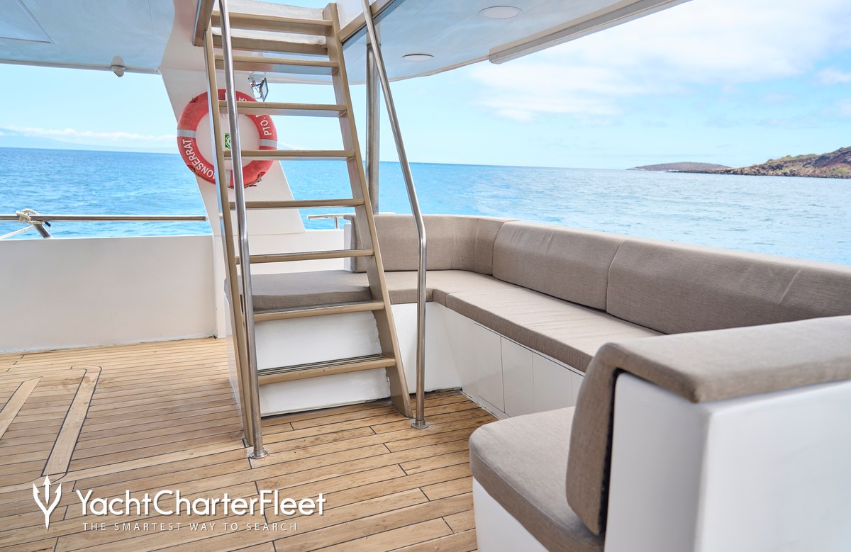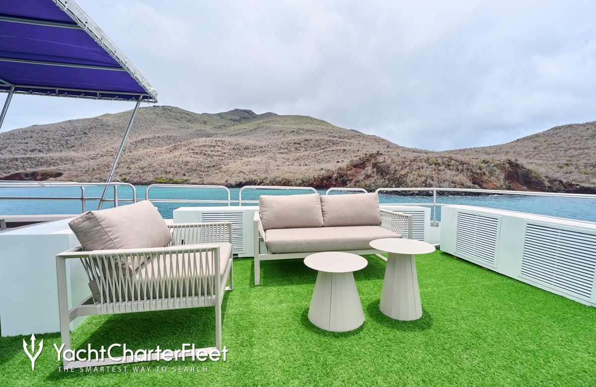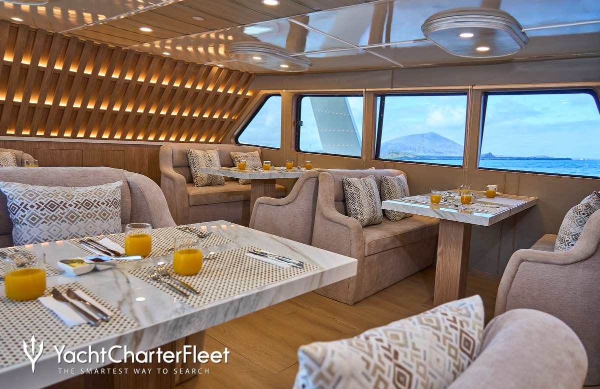 Charter icludes all Galapagos excursions and guided island activities, with two onboard naturalist guides.