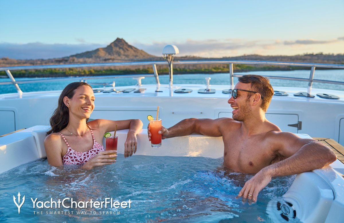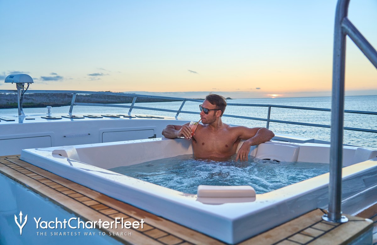 On your charter, you'll find plenty to keep you busy and entertained such as a deck jacuzzi, perfect to enjoy the scenery with your favourite drink in hand.