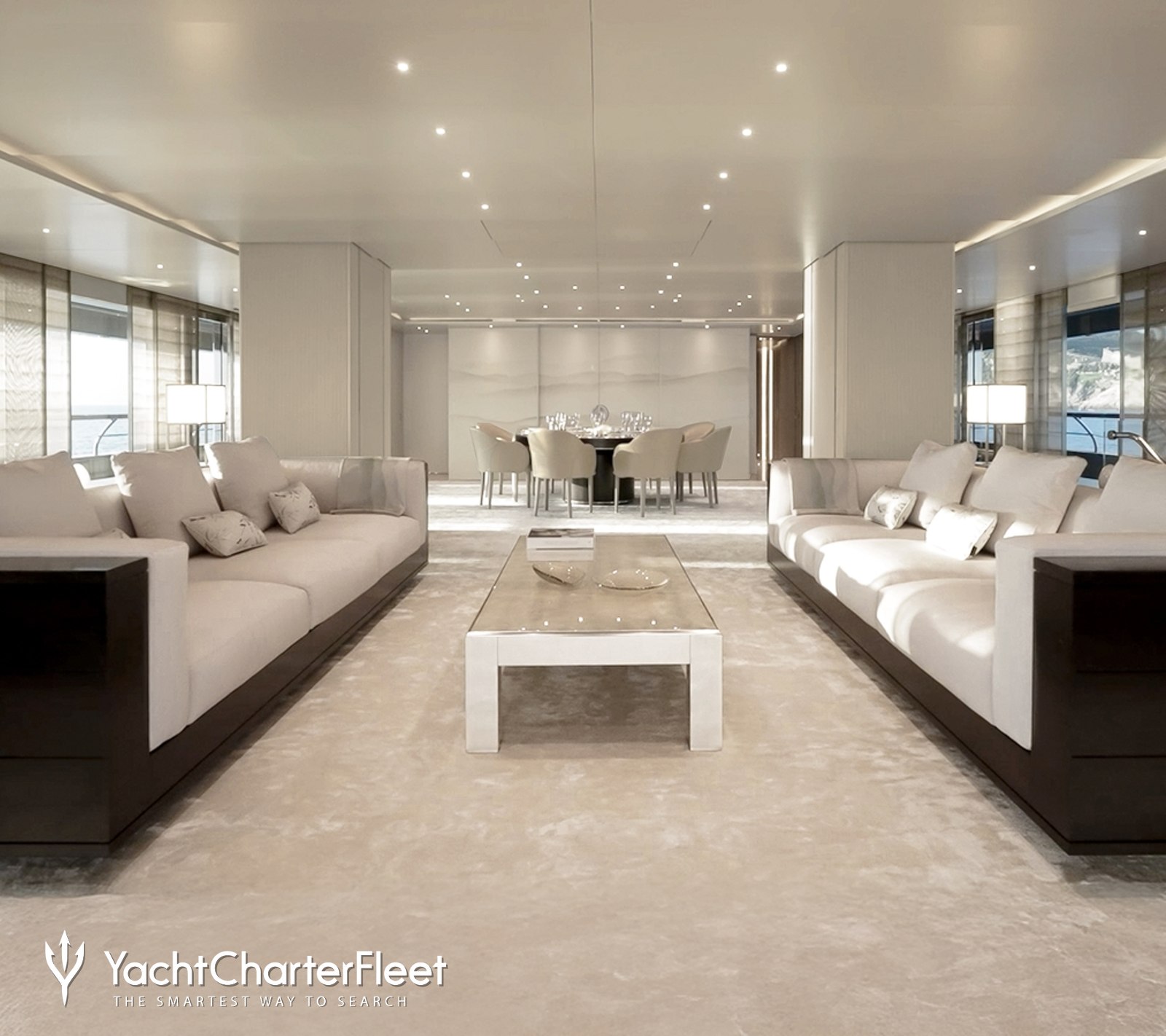 Spacious and abundantly lit with natural daylight, the open-plan layouts throughout the social areas are ideal for both family and corporate yacht charters, with large, plush lounge areas and formal dining seating arrangements for intimate meals.