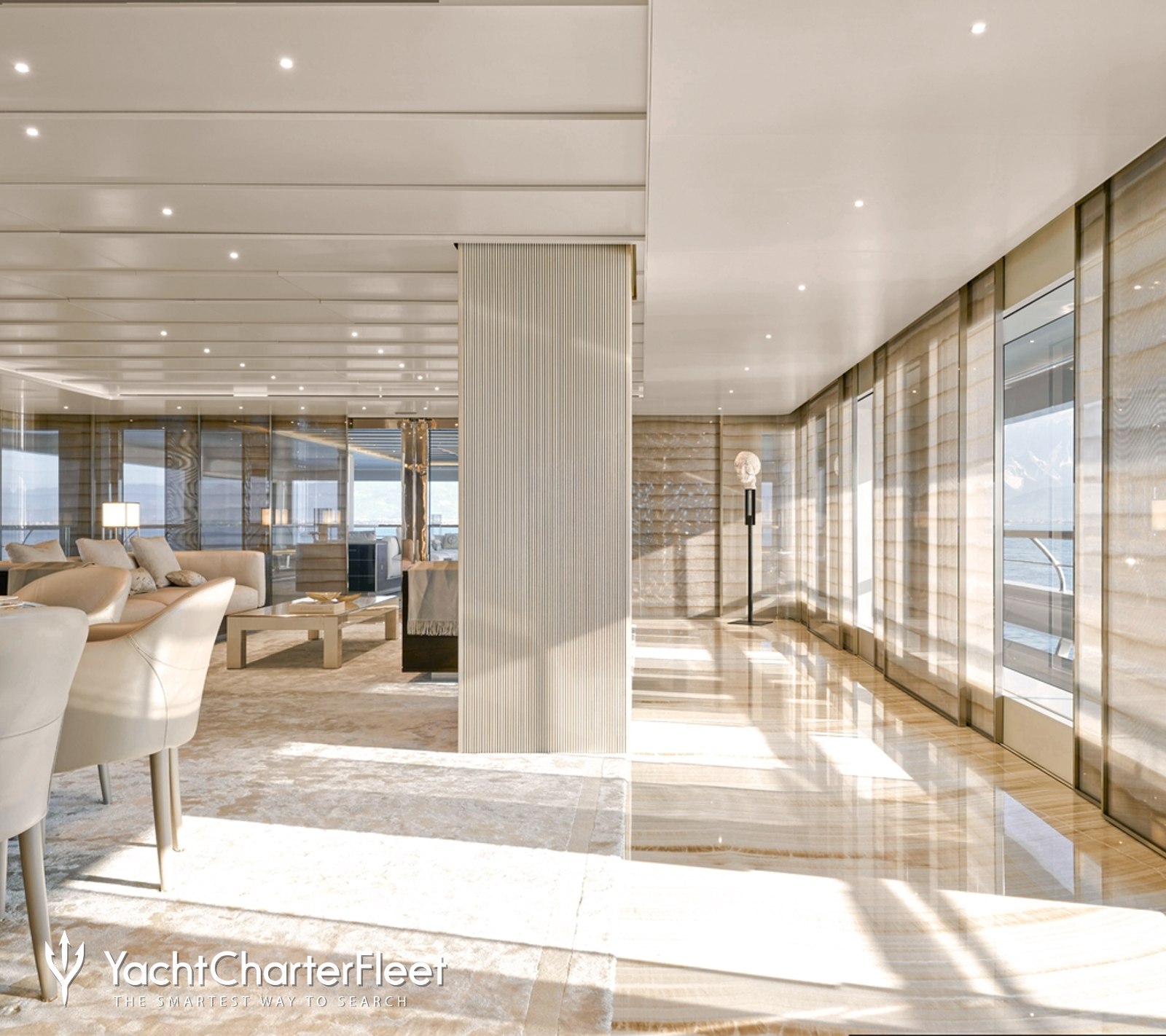 Drifting into the interiors after a busy day on the waves, the indoor environment of motor yacht charter GECO BY G.ARMANI is quite simply breathtaking.