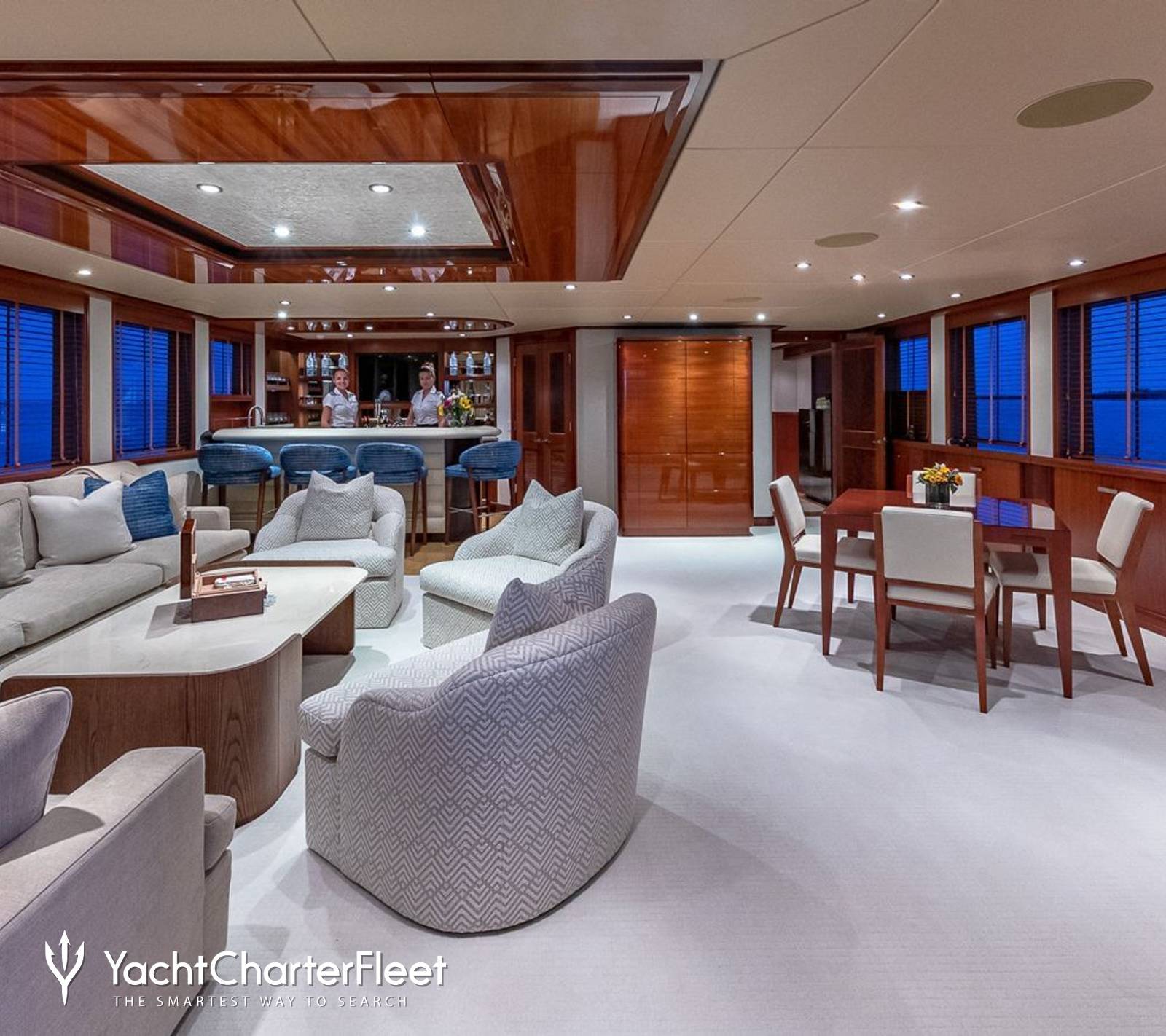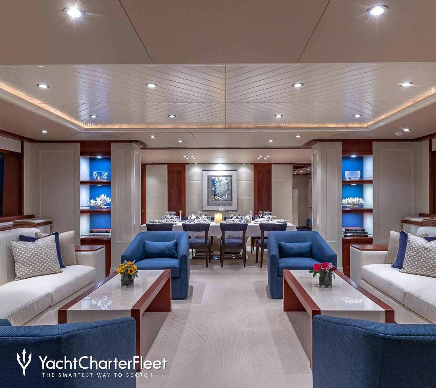 Sporting an open-plan layout ideal for family yacht charters, each area has its own dedicated space, giving guests the flexibility to choose where they'd like to spend their quiet time. Hosting plush lounge areas, formal dining set-ups, and cozy nooks, the interiors are well-appointed and are properly balanced to allow for relaxation and entertaining in equal measure.