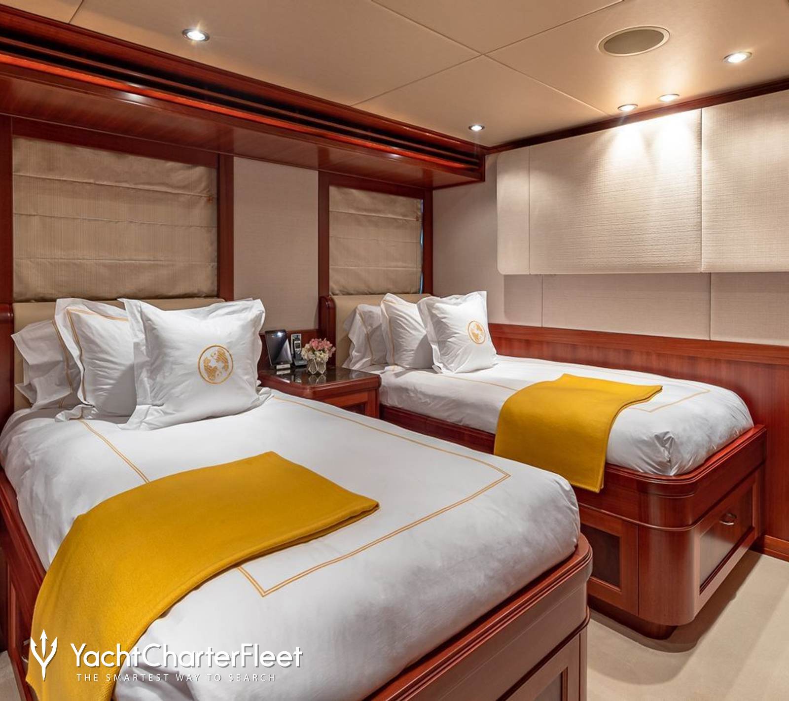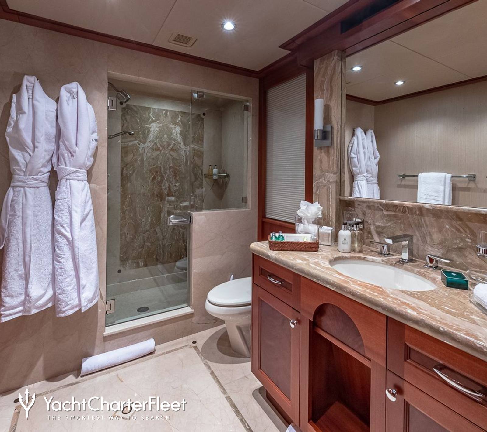 Completing the ensemble, overnight accommodation onboard PISCES comprises of a five-cabin layout for up to 11 charter guests, with the selection including a spacious master with its own lounge area, three doubles, and a twin cabin.