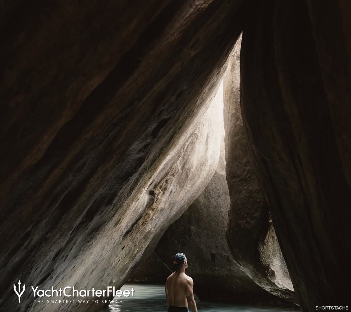 The trail through the boulders is a physical experience that requires visitors to climb ladders and wade through knee-deep water. This path eventually opens into the Cathedral Room, a natural pool encased within a high-roofed cave. The combination of the cool stone and the rhythmic sound of the tide makes this a primary stop for any Caribbean yacht charter itinerary.