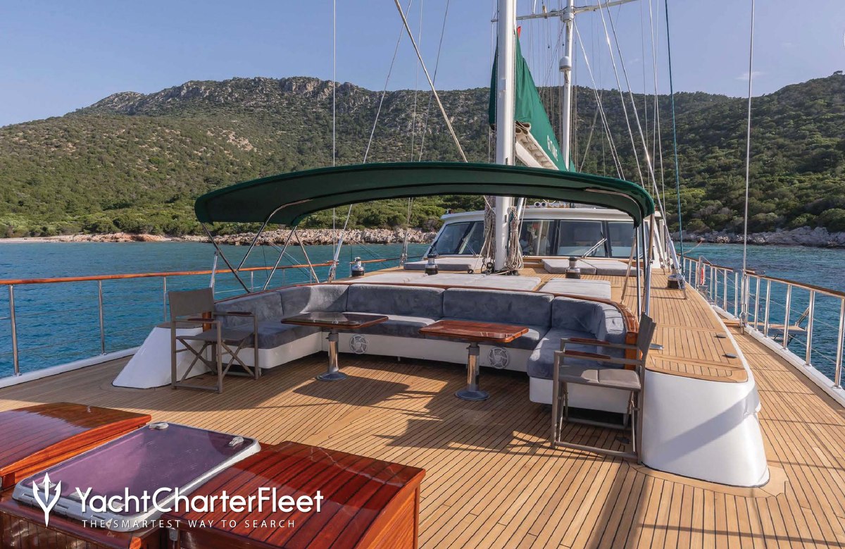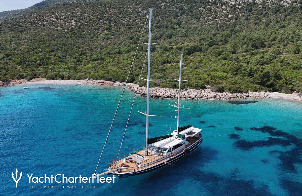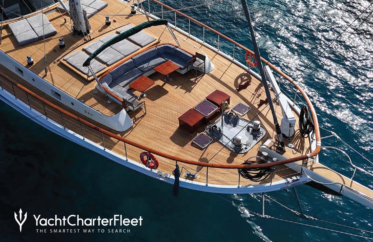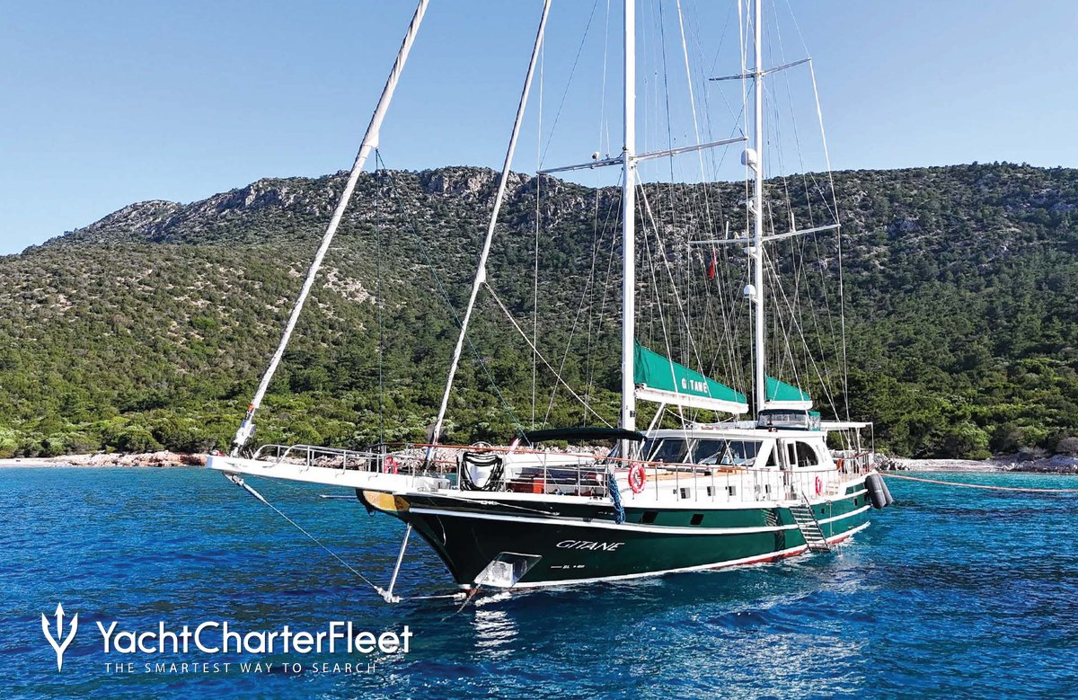 The 37.06m/121'7" 'Gitane' gulet yacht built by shipyard Evadne Yachts is available for charter for up to 9 guests in 4 cabins. This yacht features interior styling by American designer Nauta Yachts.