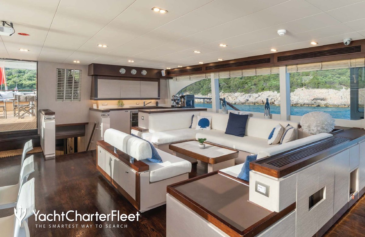 Gitane benefits from some excellent features to improve your charter, notably Wi-Fi connectivity, allowing you to stay connected at all times, should you wish. You can stay comfortable on board whatever the weather, with air conditioning during your charter.