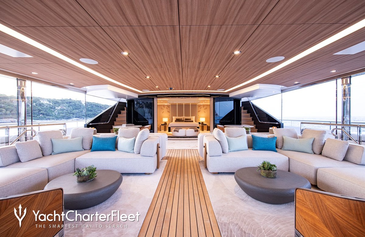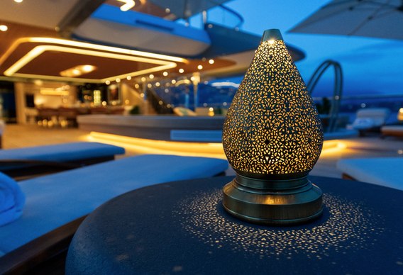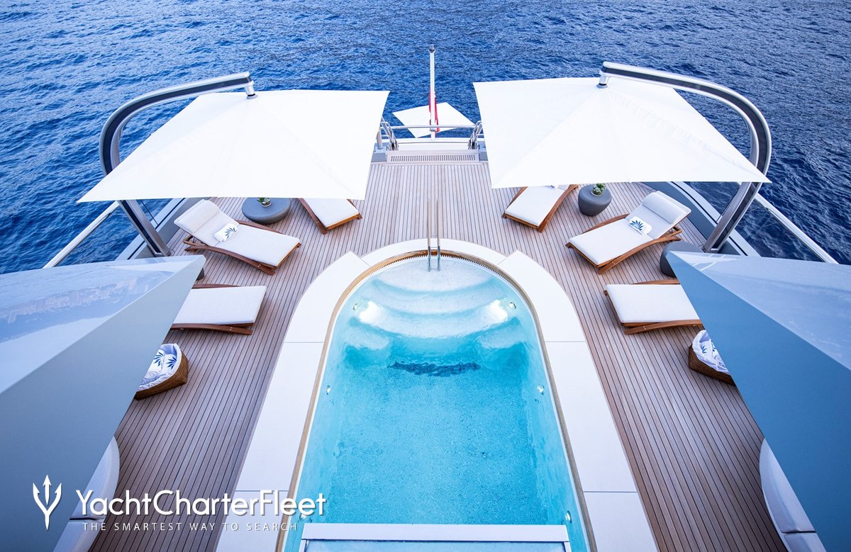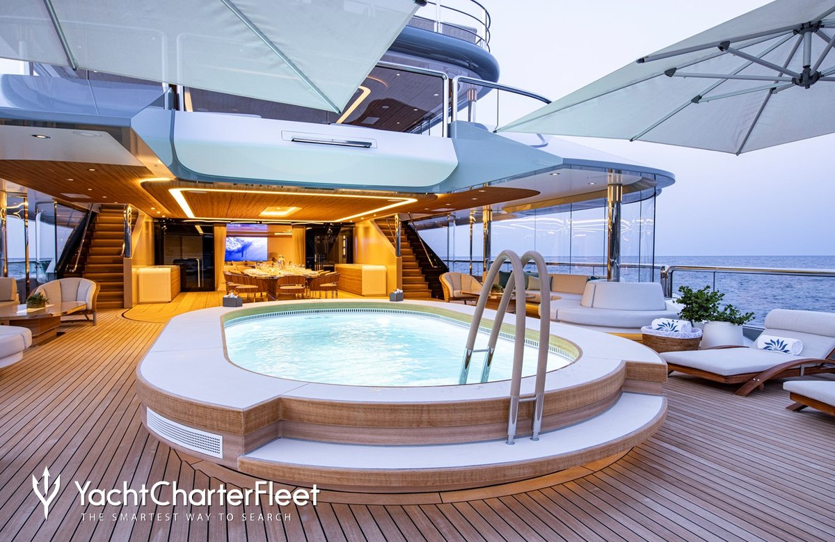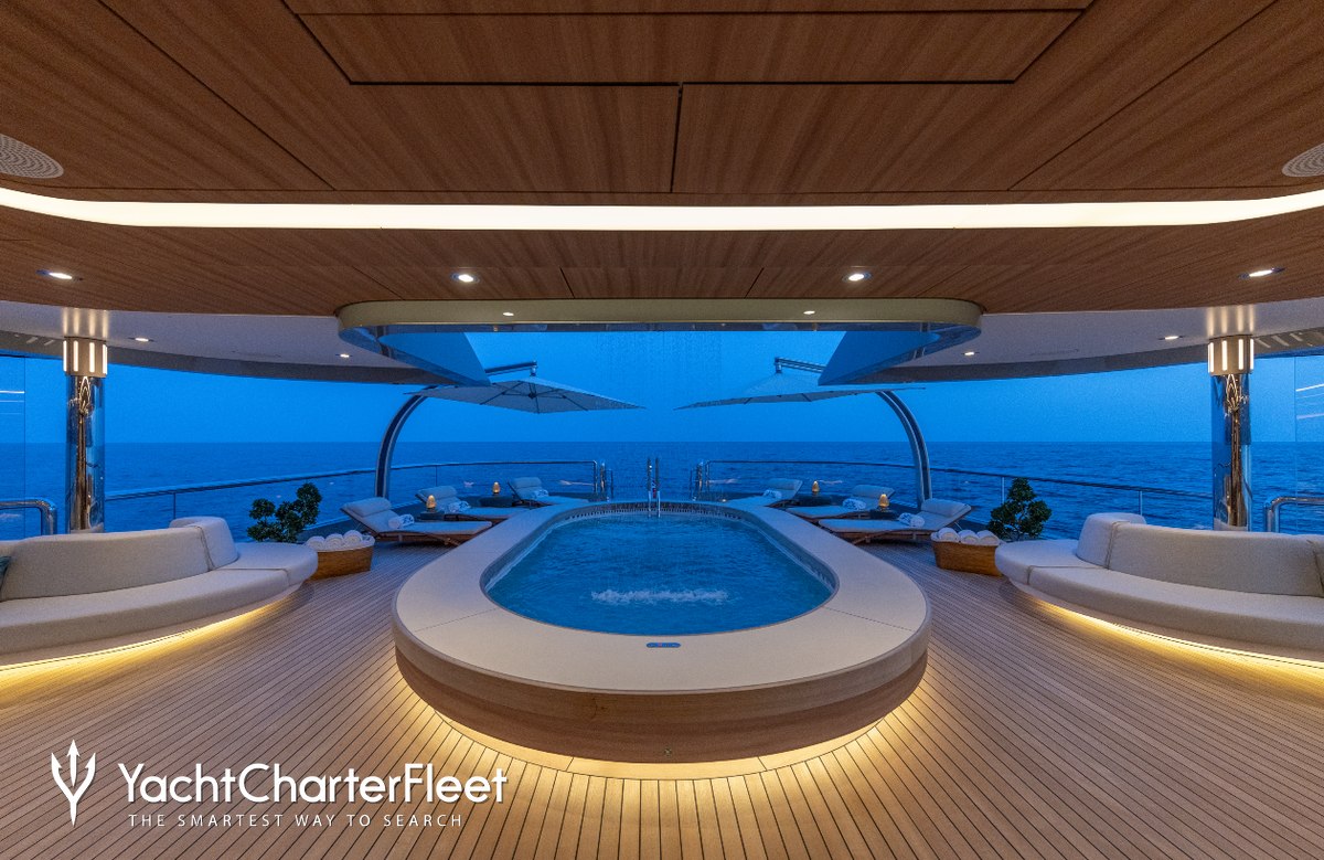 A charter on Luna is comfortable and convenient thanks to the provided amenities, notably a state-of-the-art movie theatre for movie nights. Elsewhere the latest beauty and hair treatments are available in the luxurious beauty room and in addition for the ultimate relaxation experience, she plays host to a luxury spa. Soothe tired limbs and reinvigorate yourself in the sauna and guests can enjoy a dip in the pool. Make your day truly exceptional at the beach club or a gym with all the latest equipment is available for a good work out. Retreat to the deck jacuzzi and soak up the scenery.