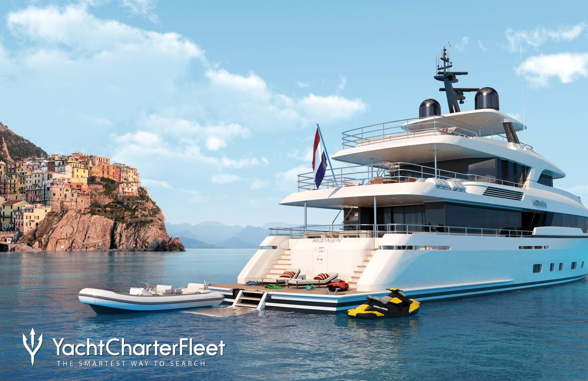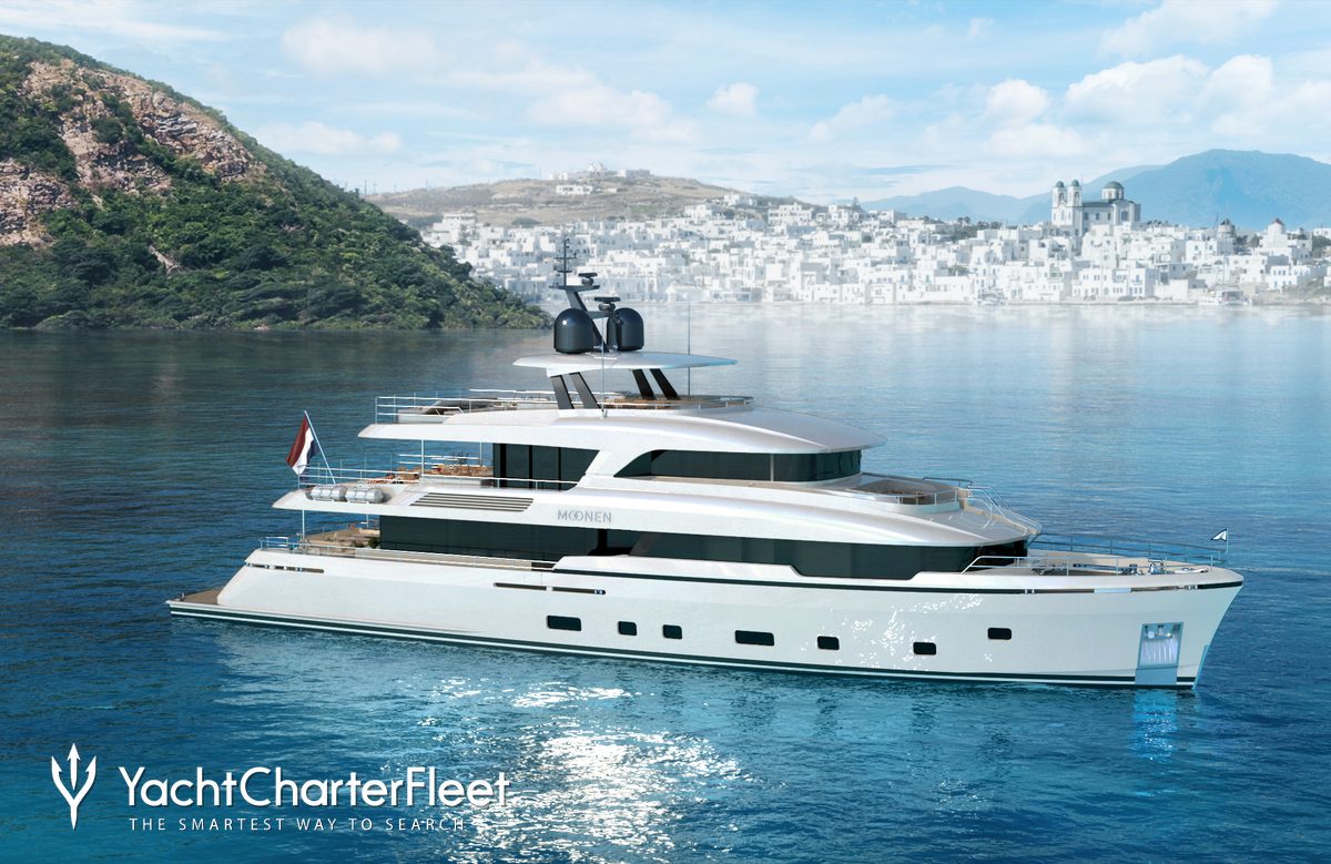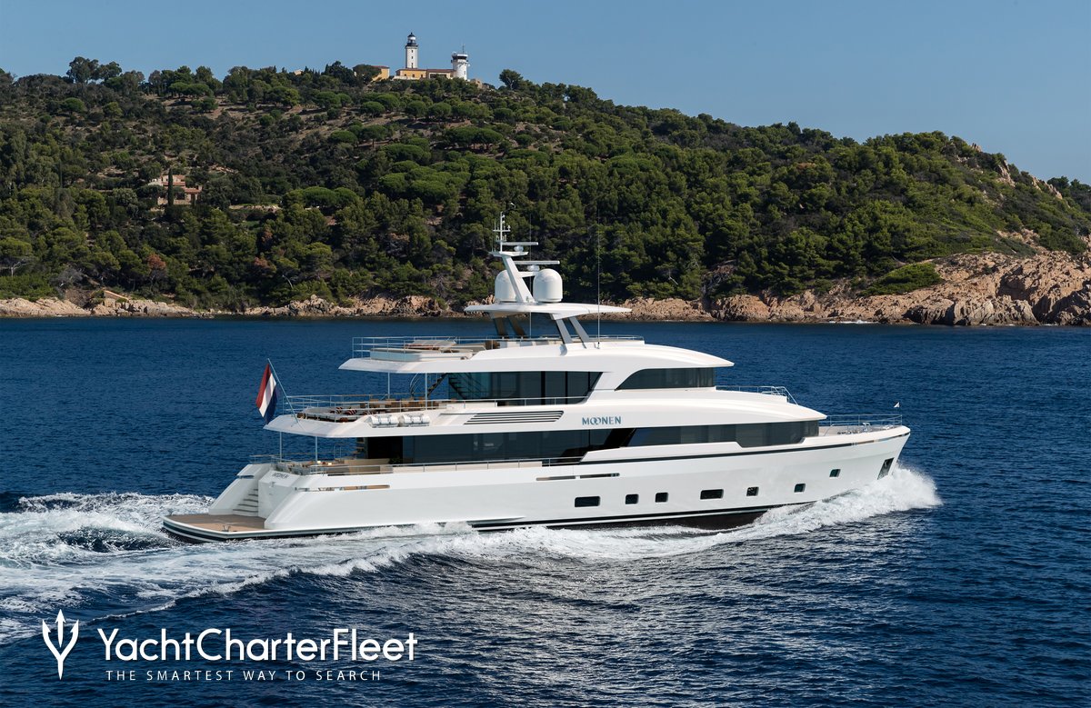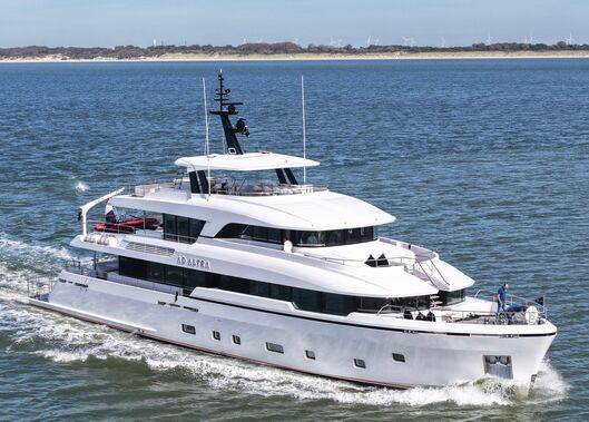 The 37.4m/122'8" motor yacht 'Ad Astra' offers the unmissable chance to charter a brand new superyacht, having only launched this year. Delivered by the Dutch shipyard Moonen and featuring interior styling by Dutch designer Hollander Yacht Design she can comfortably accommodate up to 10 guests in 5 cabins.