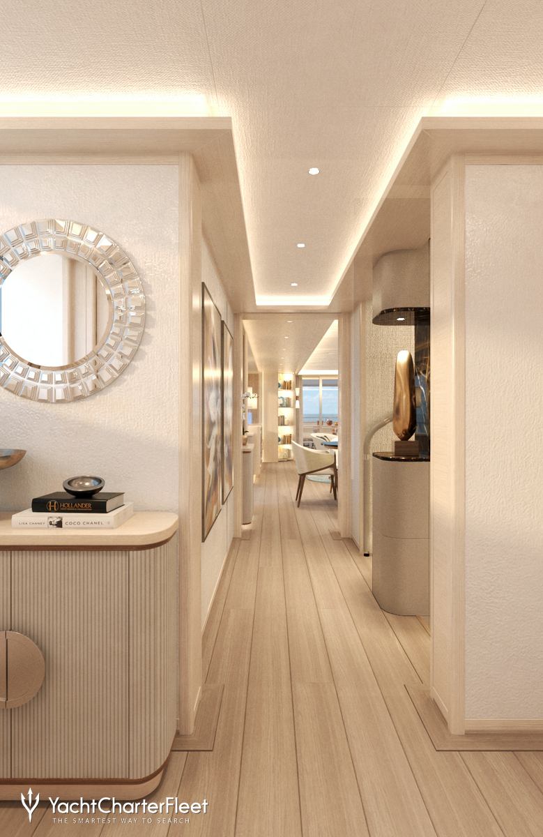 Built in 2025, Ad Astra offers guest accommodation for up to 10 guests in 5 suites comprising a master suite, two VIP cabins and two twin cabins. She is also capable of carrying up to 6 crew onboard to ensure a relaxed luxury yacht charter experience.