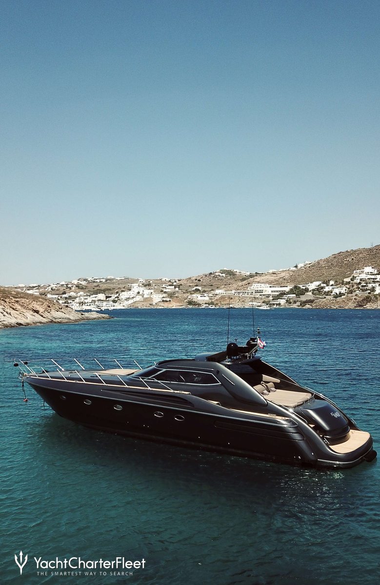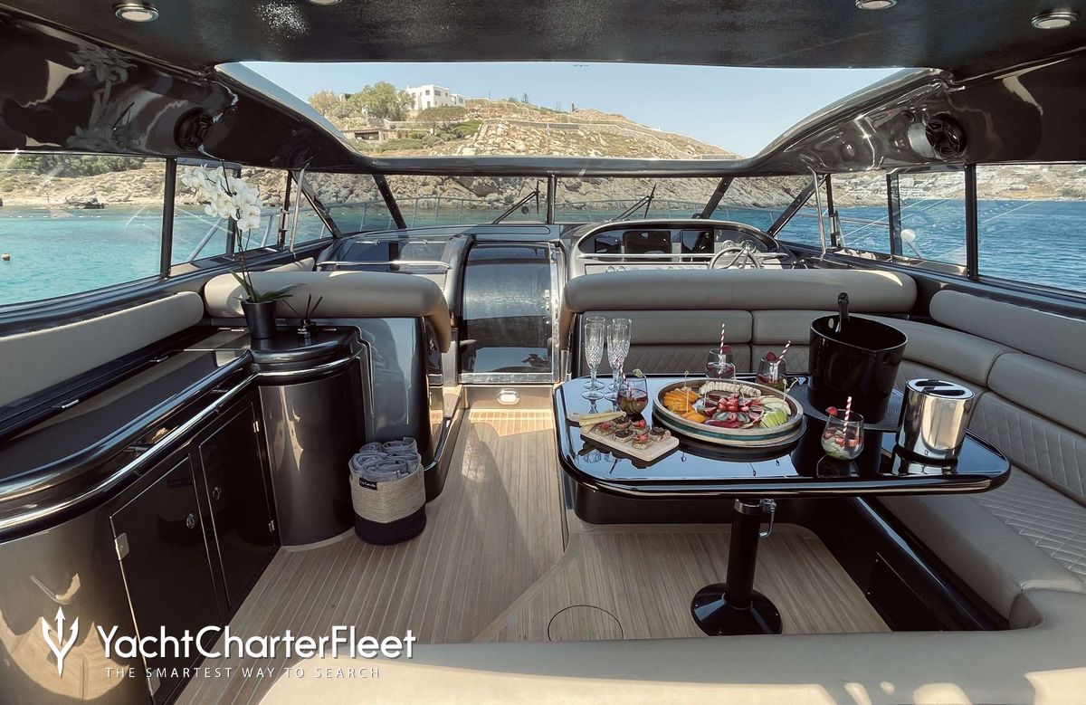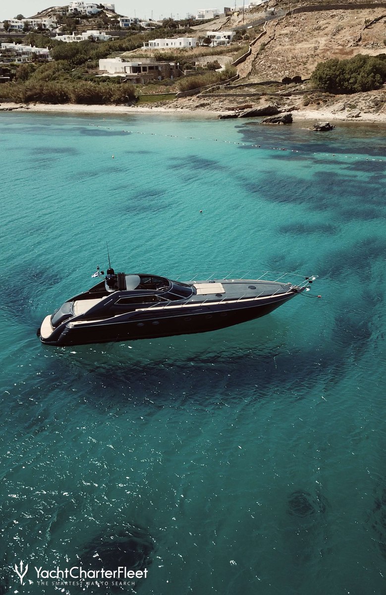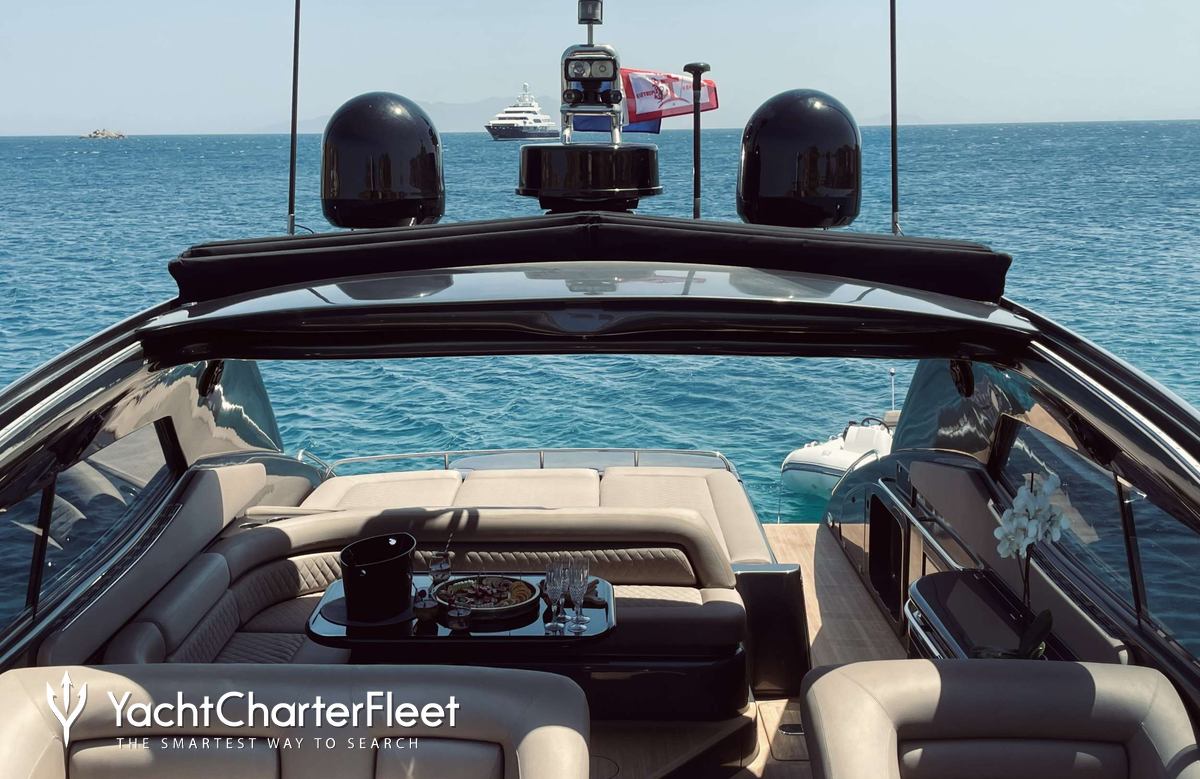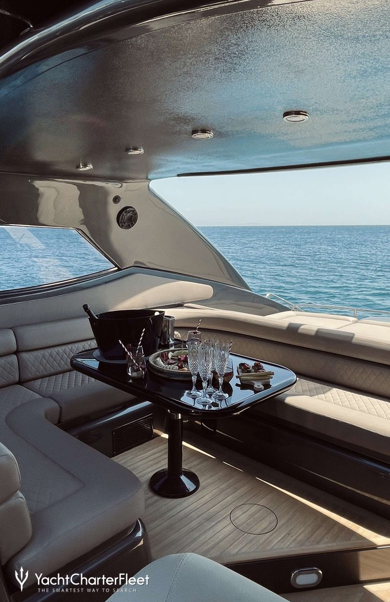 The 20.73m/68' '007' motor yacht built by the British shipyard Sunseeker is available for charter for up to 6 guests in 3 cabins.