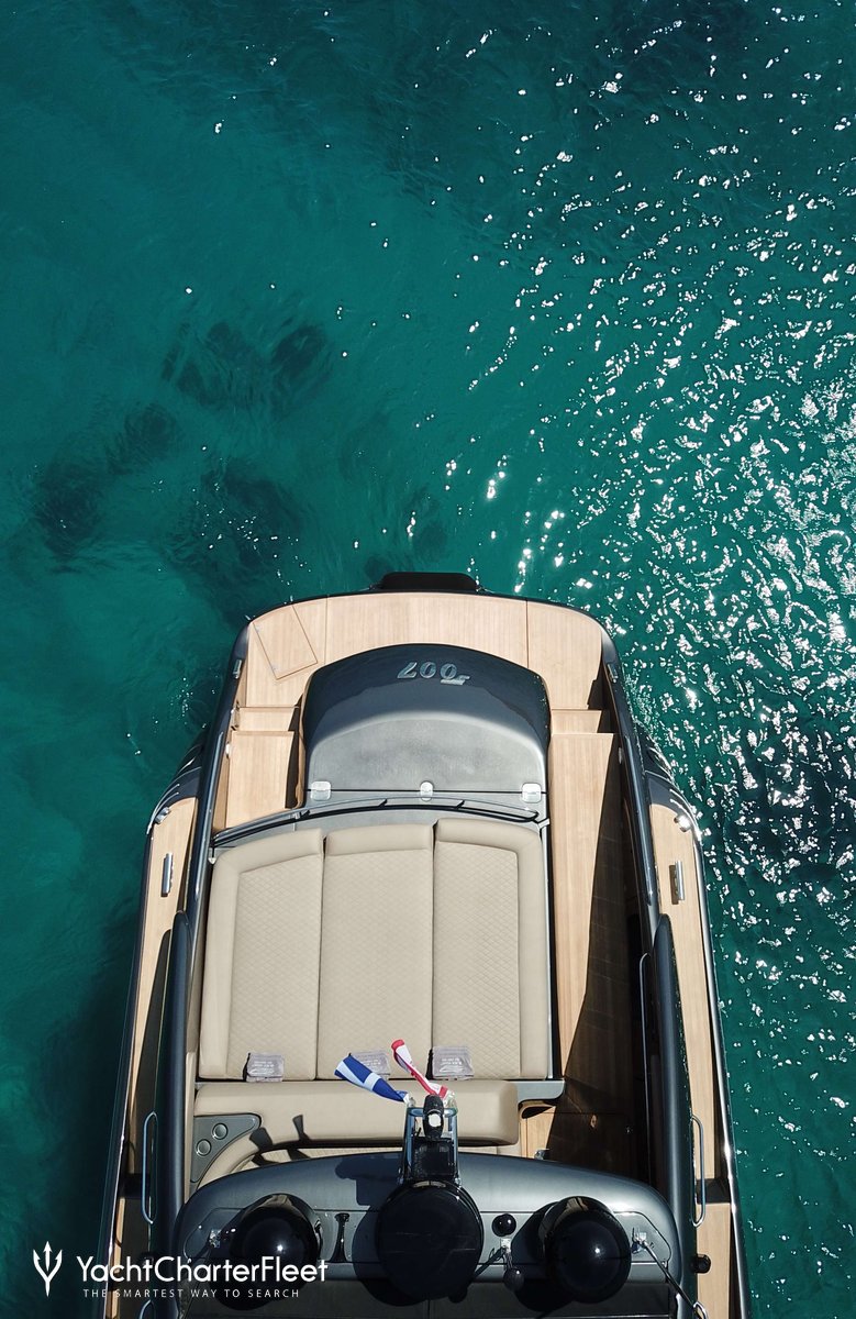 007 is built with a GRP hull and GRP superstructure. 007 comfortably cruises at 27 knots. Her low draft of 1.44m/4'9" makes her primed for accessing shallow areas and cruising close to the shorelines.