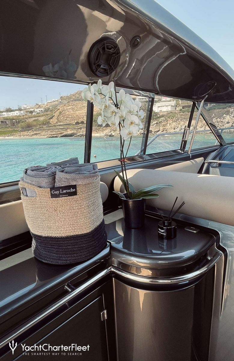 Whatever your activities on your charter, you'll find some impressive features are seamlessly integrated to help you such as Wi-Fi connectivity, allowing you to stay connected at all times, should you wish. You can stay comfortable on board whatever the weather, with air conditioning during your charter.