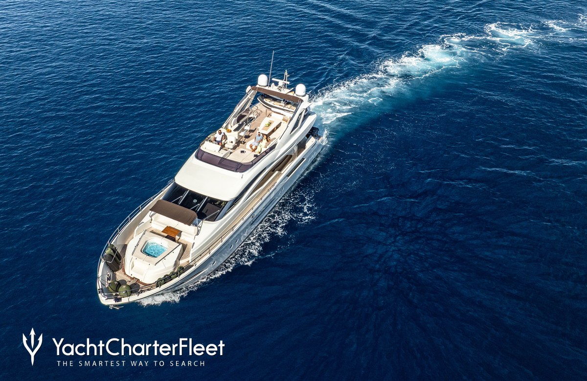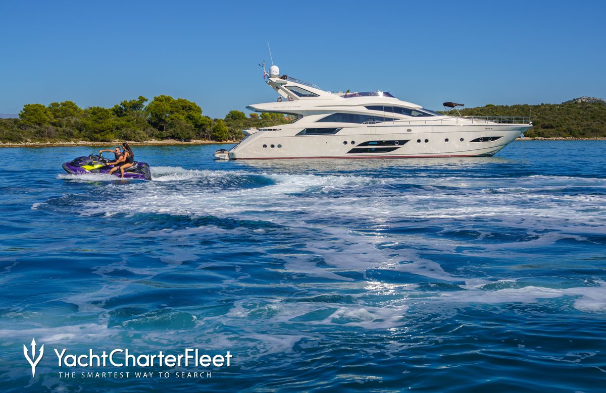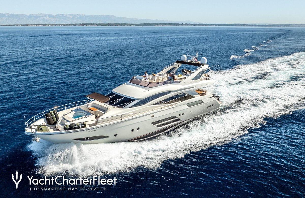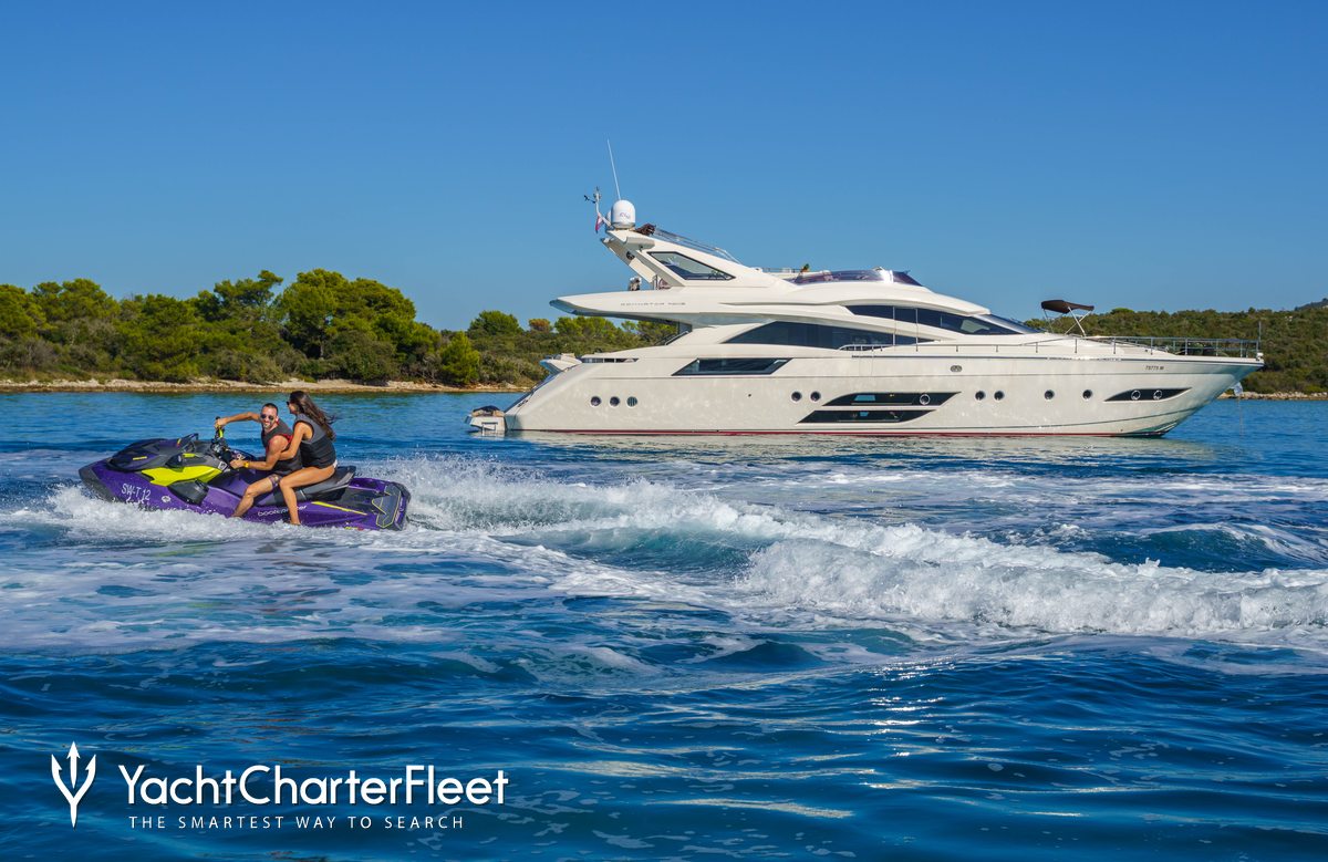 The 23.1m/75'9" 'Dalia' motor yacht built by the Italian shipyard Dominator is available for charter for up to 8 guests in 4 cabins.