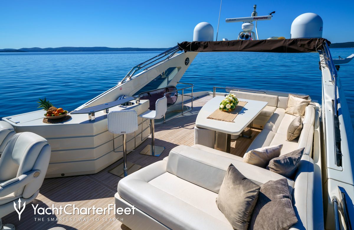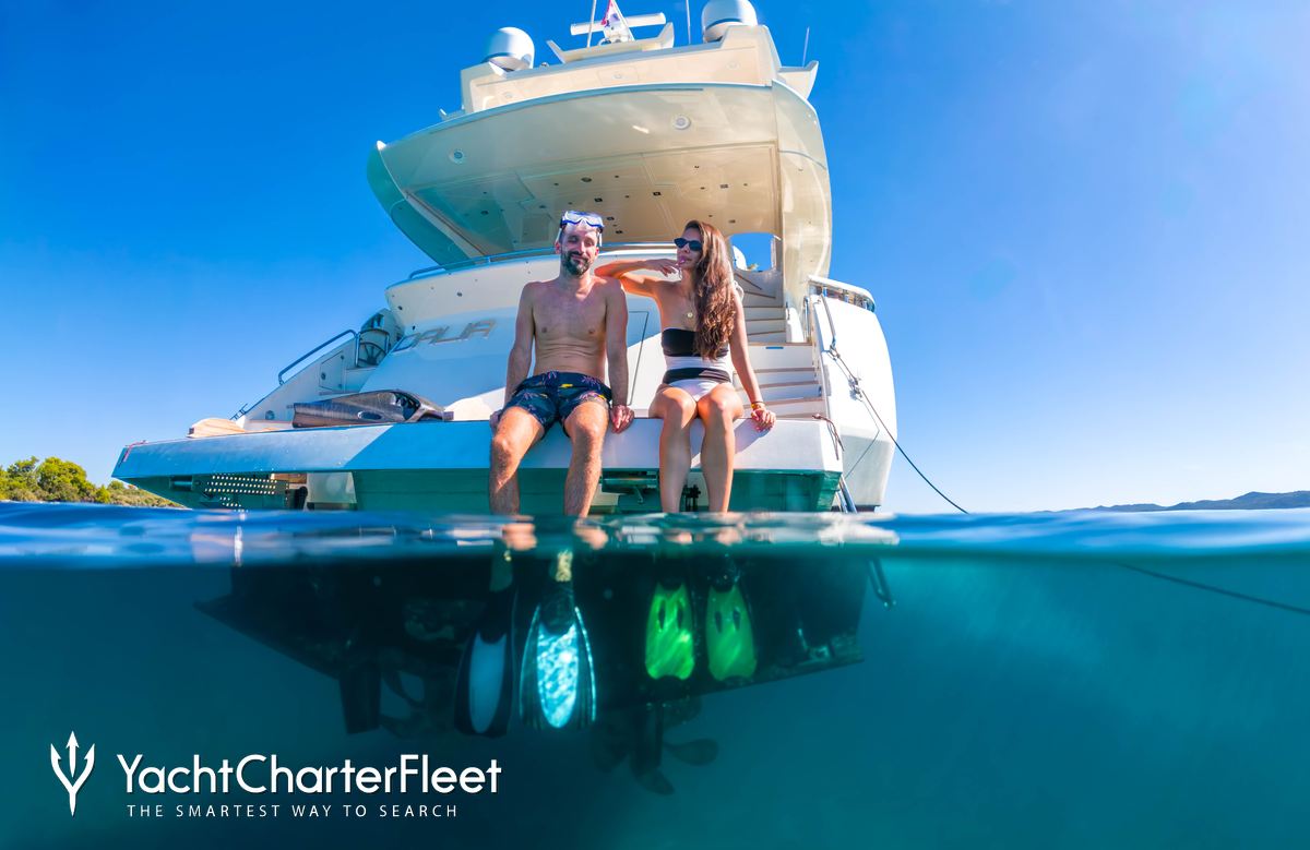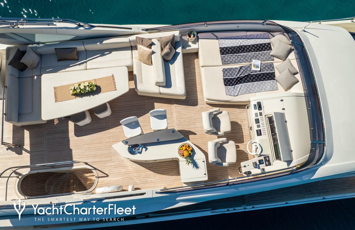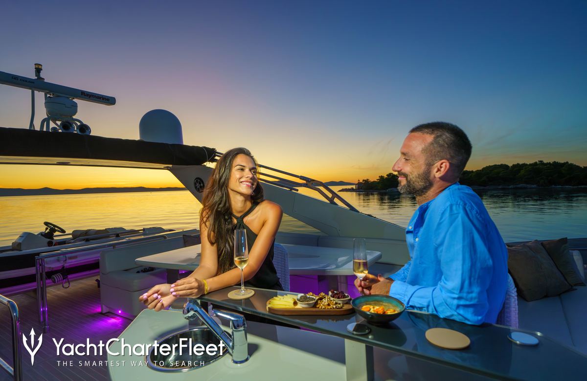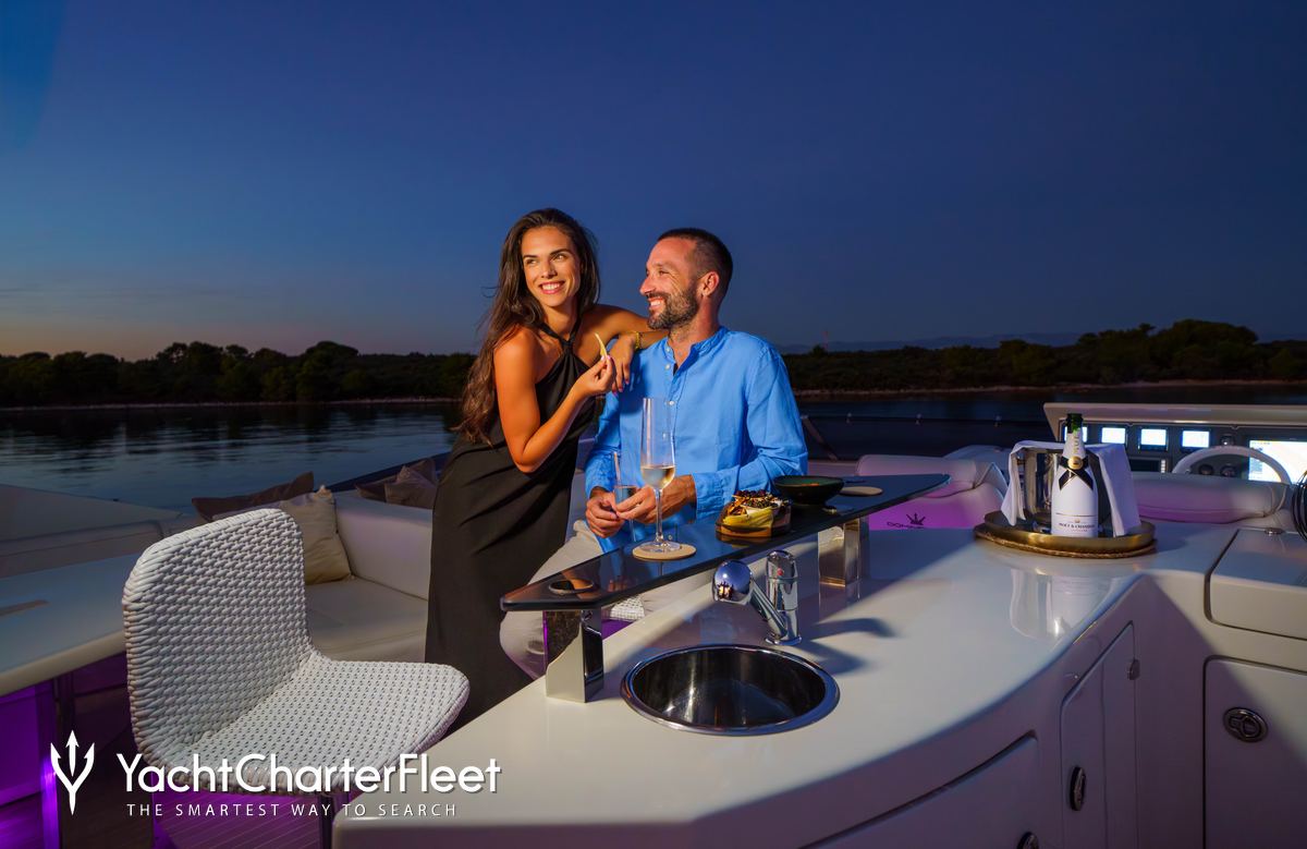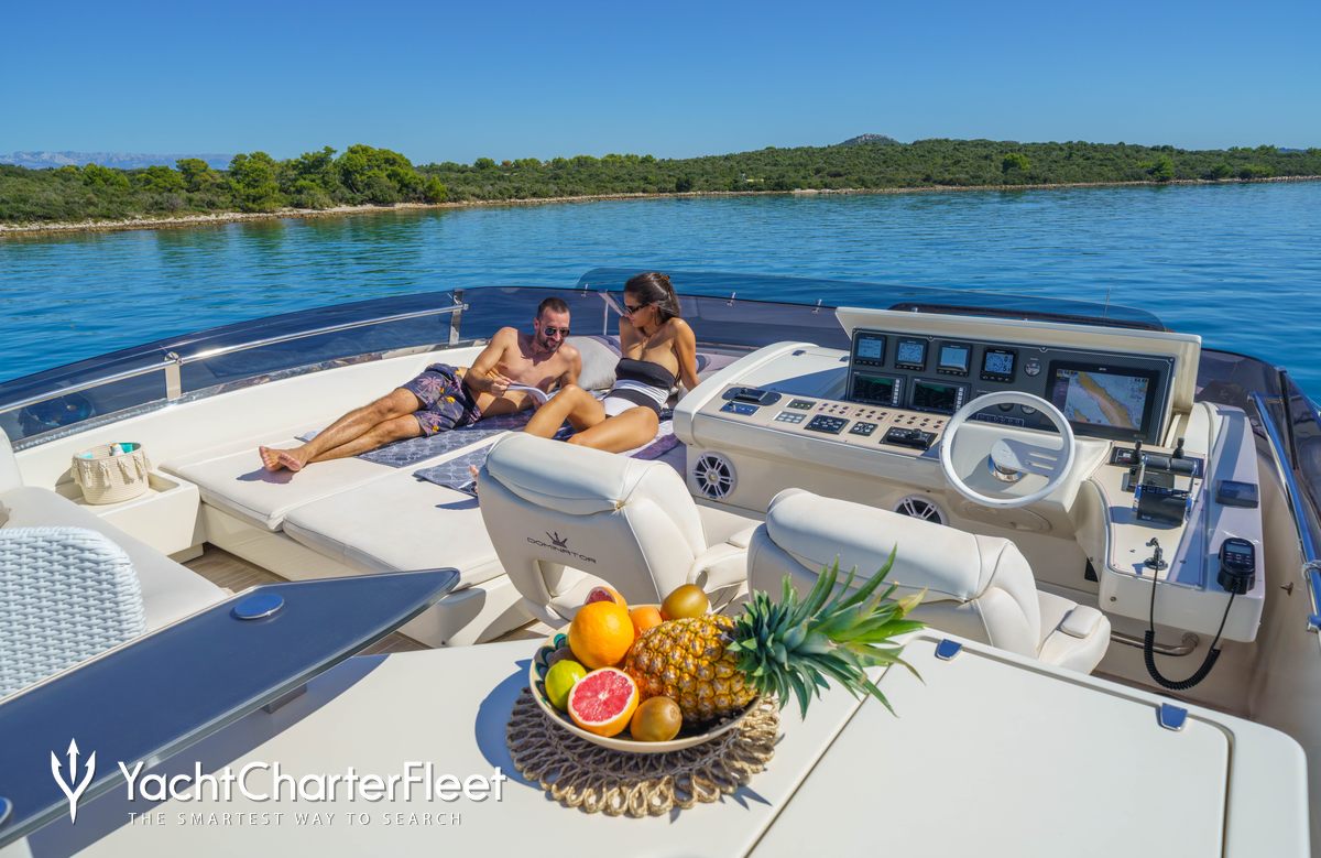 A charter on Dalia is comfortable and convenient thanks to the provided amenities such as a deck jacuzzi, perfect to enjoy the scenery with your favourite drink in hand.