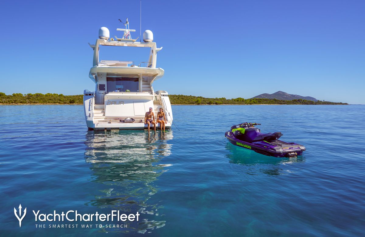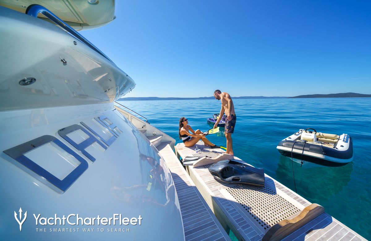 When not cruising Dalia has onboard an incredible selection of water toys and accessories for you and your guests to connect with the waters around you. Principle among these are waterskis that are hugely entertaining whether you are a beginner or a seasoned pro. Also there are SEABOBs, that allow you to skim along the surface or steer under the crystal water and experience life swimming with the fish. If that isn't enough Dalia also features paddleboards and snorkelling equipment. Dalia has a 3.9m/12'10" Williams Jet Tenders Tender to transfer you from ship to shore.