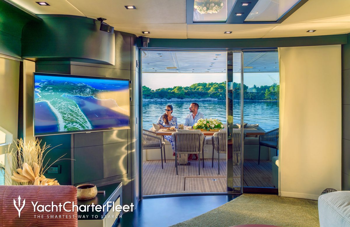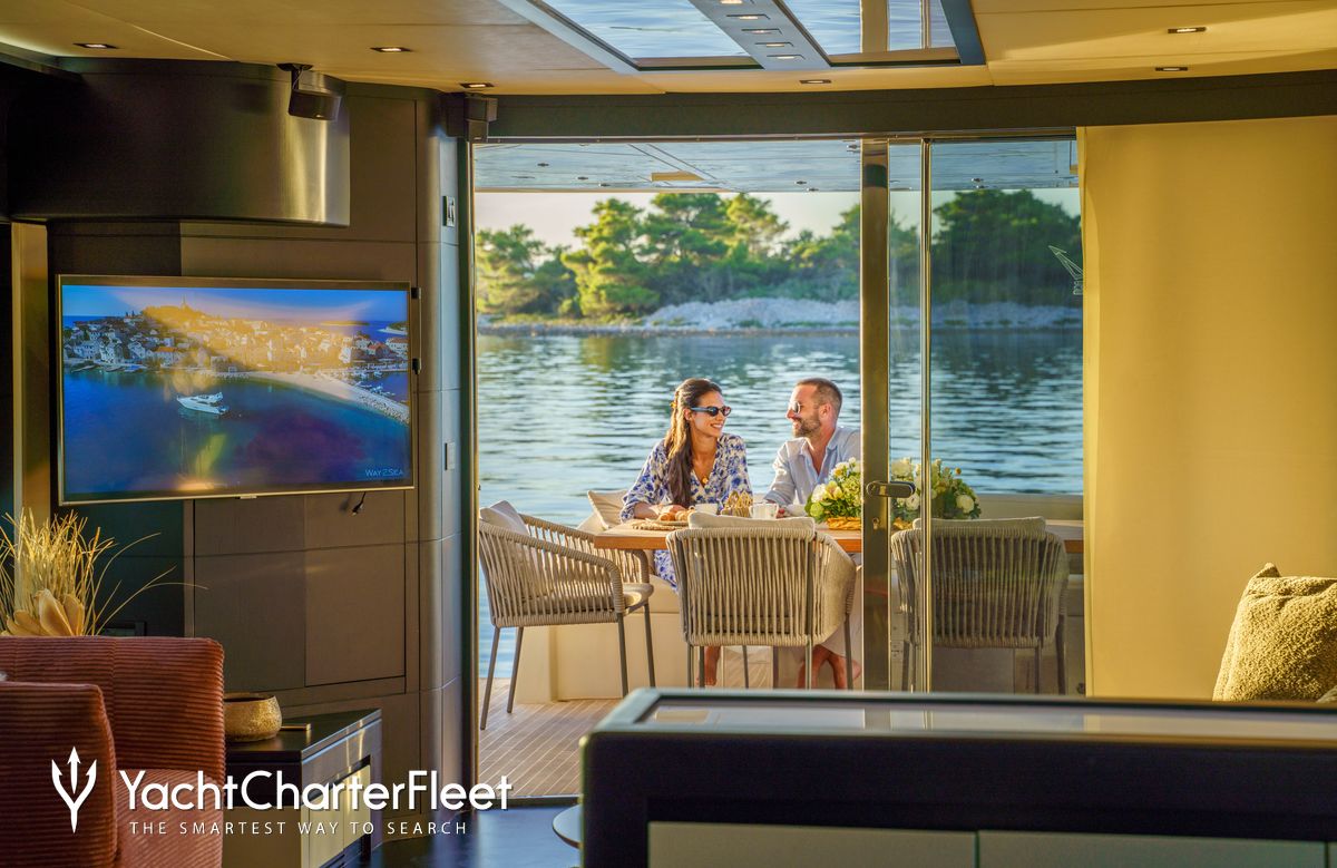 Whatever your activities on your charter, you'll find some impressive features are seamlessly integrated to help you such as Wi-Fi connectivity, allowing you to stay connected at all times, should you wish. Guests will experience complete comfort while chartering thanks to air conditioning.