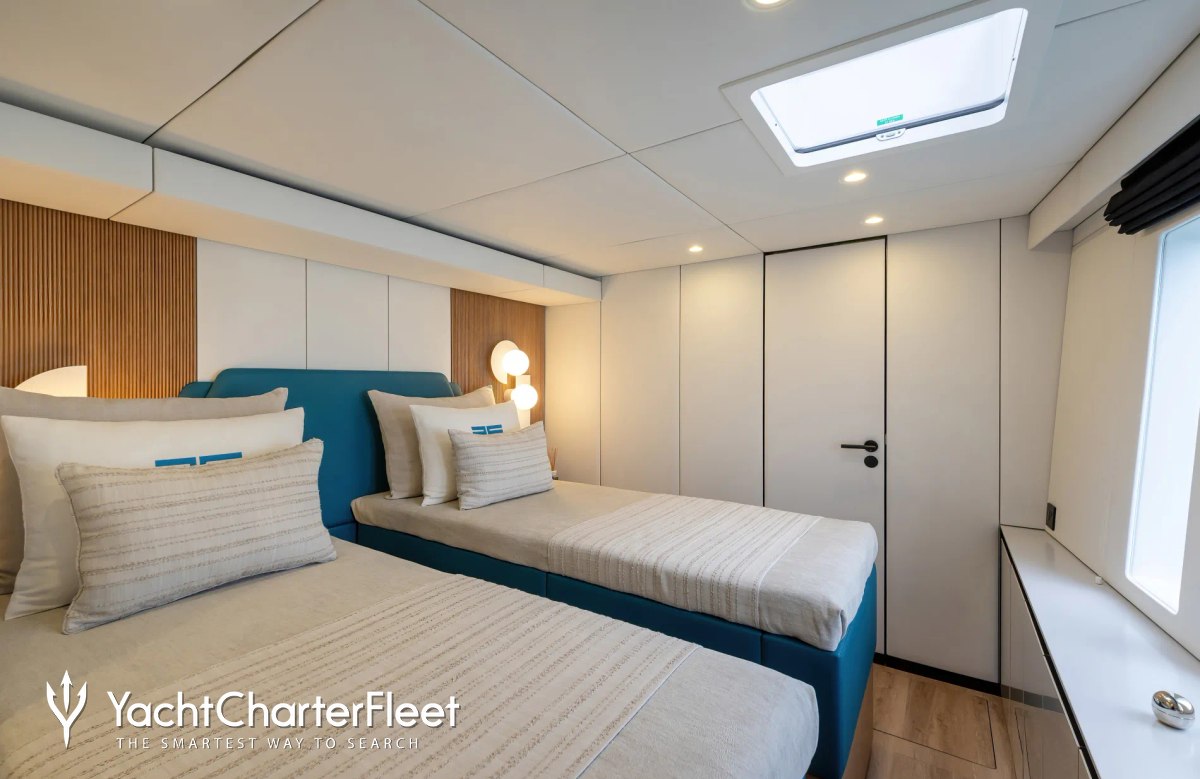Built in 2025, Belldia offers guest accommodation for up to 8 guests in 4 suites comprising a master suite, one VIP cabin, one double cabin and one twin cabin. She is also capable of carrying up to 4 crew onboard to ensure a relaxed luxury yacht charter experience.